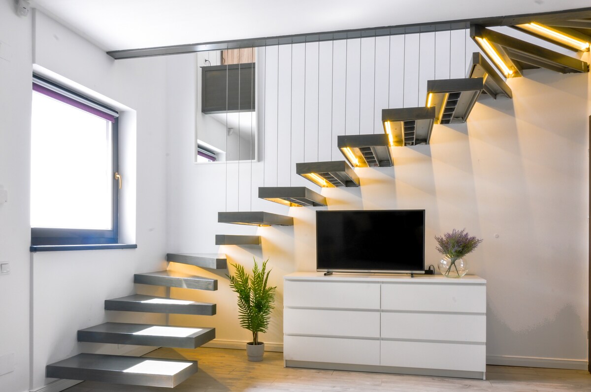 Desfrute de uma experiência premium num apartamento moderno, cuidadosamente concebido até ao mais ínfimo detalhe. Localizado numa zona tranquila, mas perto das principais atrações da cidade, o espaço combina o design contemporâneo com a atmosfera acolhedora de uma "casa longe de casa". Uma área de estar moderna e acolhedora, perfeita para noites relaxantes. Uma cozinha em espaço aberto, totalmente equipada com uma elegante área de refeições e todos os eletrodomésticos de que necessita para uma estadia sem preocupações. Também inclui um terraço espetacular.