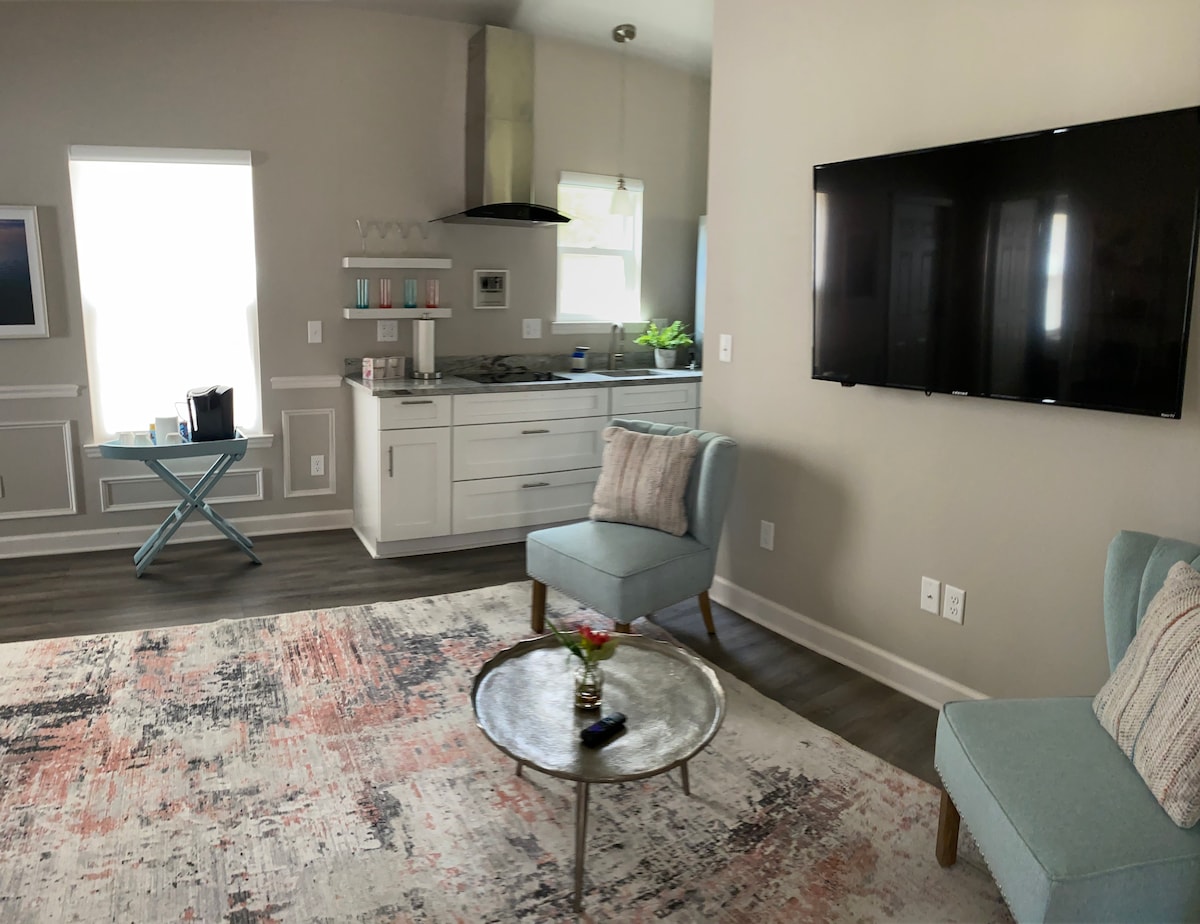 Entrada privada na sua suíte! Foi adicionada uma parede de três metros para separar a suite do resto da casa para dar privacidade aos hóspedes. Corredor super agradável e moderno, quarto e casa de banho para 2 pessoas. Micro-ondas, mini-frigorífico e cafeteira são fornecidos juntamente com café, chá, creme, água engarrafada e lanches. Lojas e restaurantes a 2 milhas. A 18 milhas da FSU e a uma curta viagem de carro de Wakulla Springs, Cherokee Sink, Leon Sinks, St. Marks, rios e praias.
