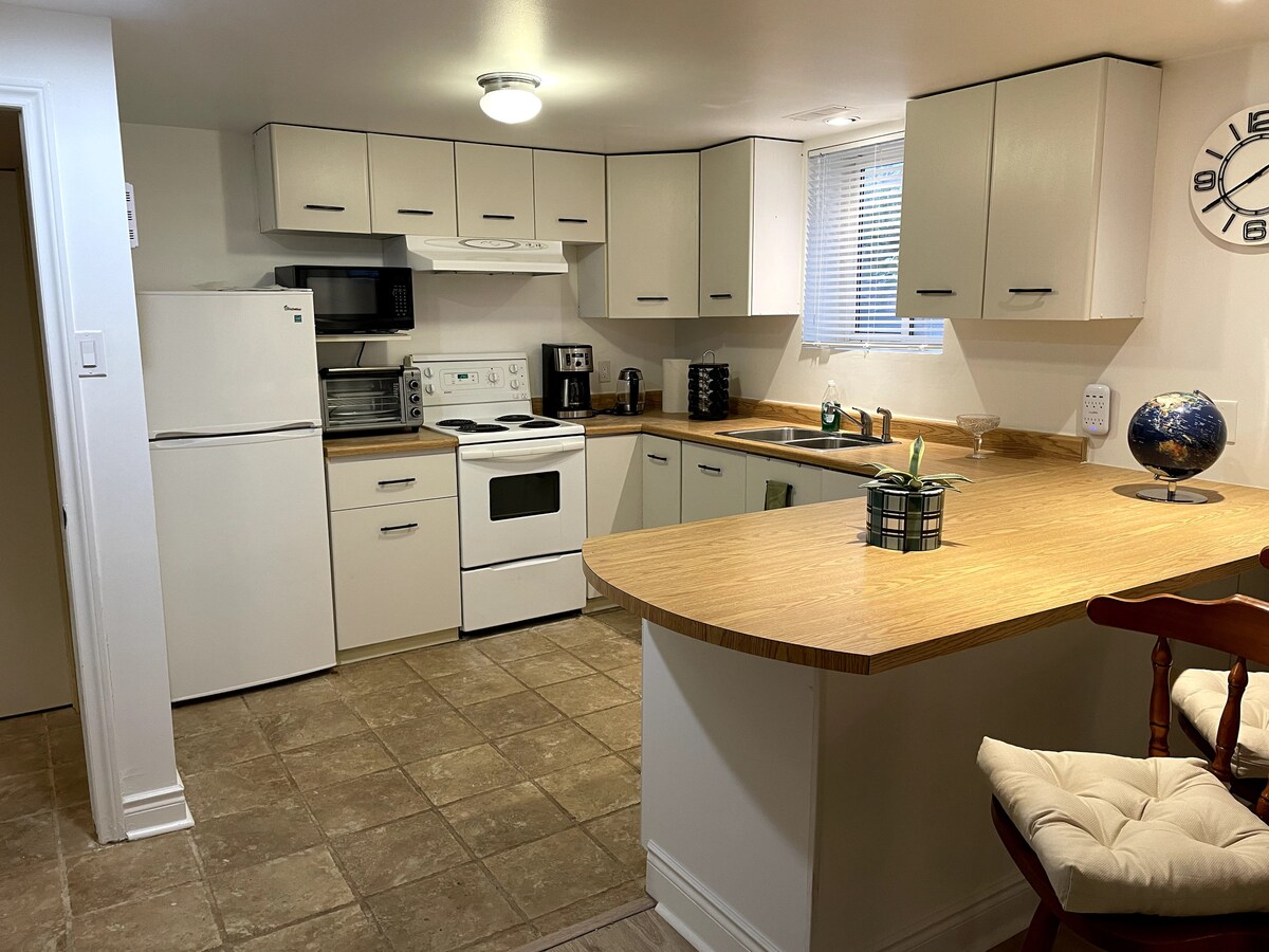 **Não são permitidas festas ou reuniões** Apartamento recentemente renovado, grande, espaçoso e acolhedor a 10 minutos do Aeroporto. Cozinha novinha em folha, casa de banho com chuveiro, piso laminado, armário embutido, área de estar e lavandaria. Desfrute de uma cama KING confortável! Vizinhança familiar e tranquila. Perto de SquareOne, Sherway Gardens, MiWay, autoestradas e Downtown. Perto de lojas, mercearias e centros de lazer. Entrada completamente separada. Estacionamento gratuito na garagem.