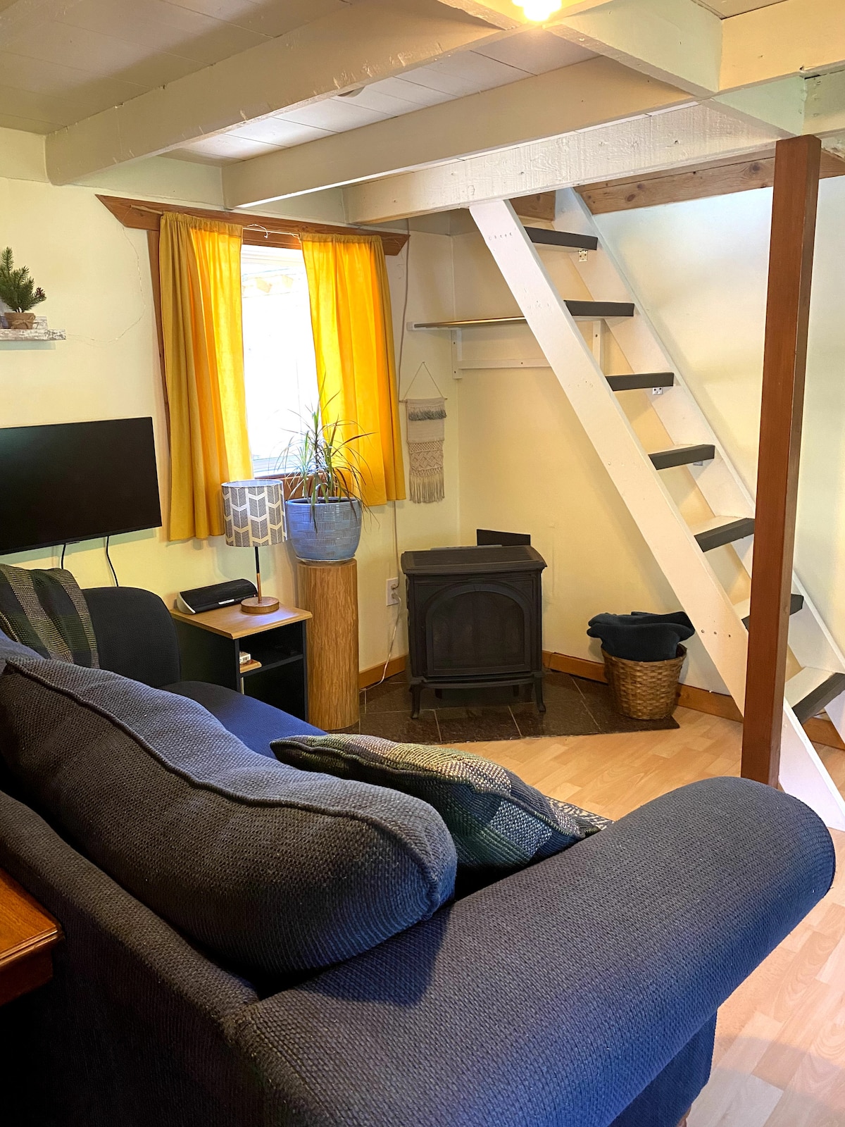 Experience serenity in our woodland Oasis! Nestled by a tranquil horseshoe-shaped pond and a gentle river, our charming cabin offers ultimate privacy. Relax in the sauna, hot tub, or by the fire pit. Accommodating up to 6 guests, it has a private queen bedroom, a loft with a king bed, and a hide-a-bed. Enjoy home-cooked meals in the full kitchen or on the bbq. With laundry services, breathtaking views, and included firewood, your getaway promises a perfect blend of comfort and nature's beauty.