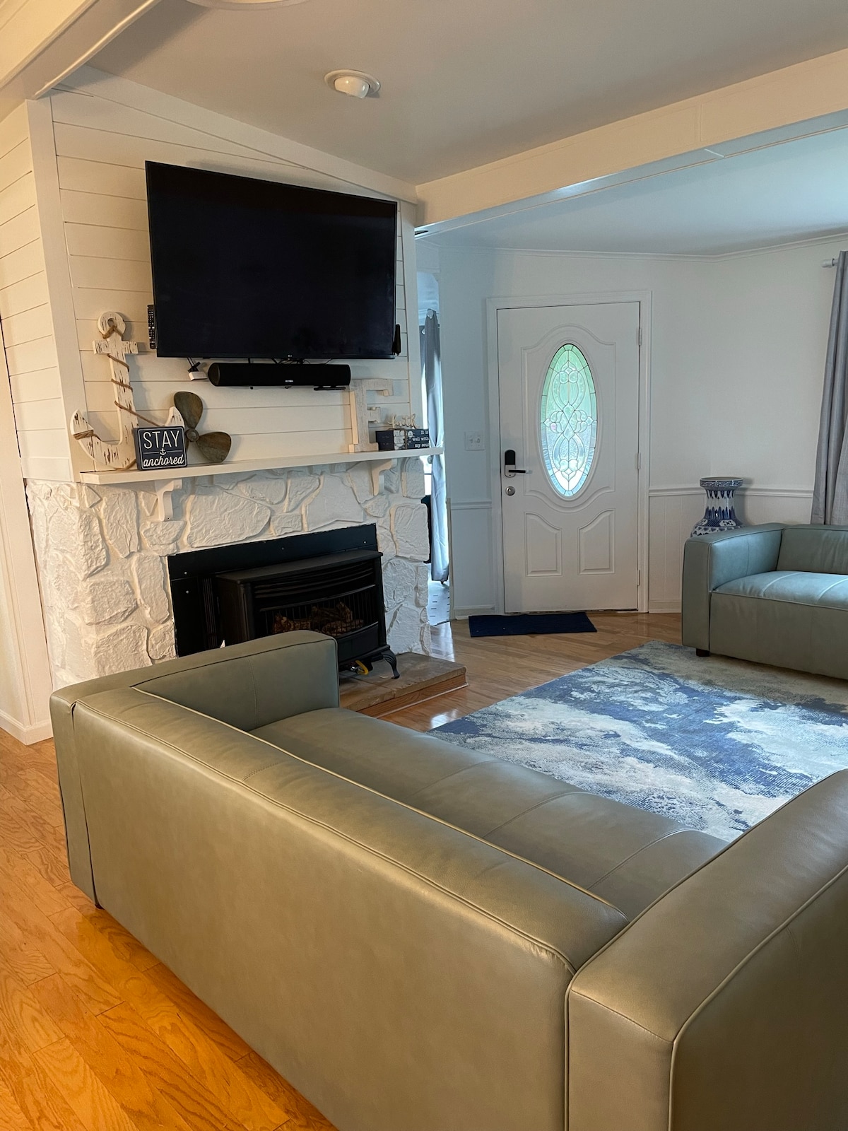 Newly renovated fishing lodge located on a small private RV Park with water access to Deep Creek and the Little River in Hertford NC. Fully appointed Kitchen, Stone Firelplace, 3 Bedrooms with new Queen size Nectar foam mattresses (2 rooms also have full size pull out sofa beds). Sleeping arrangements ideal for 6 adults and 4 children. Smart TV's and Direct TV available in Living Room and each bedroom. WiFi access included.