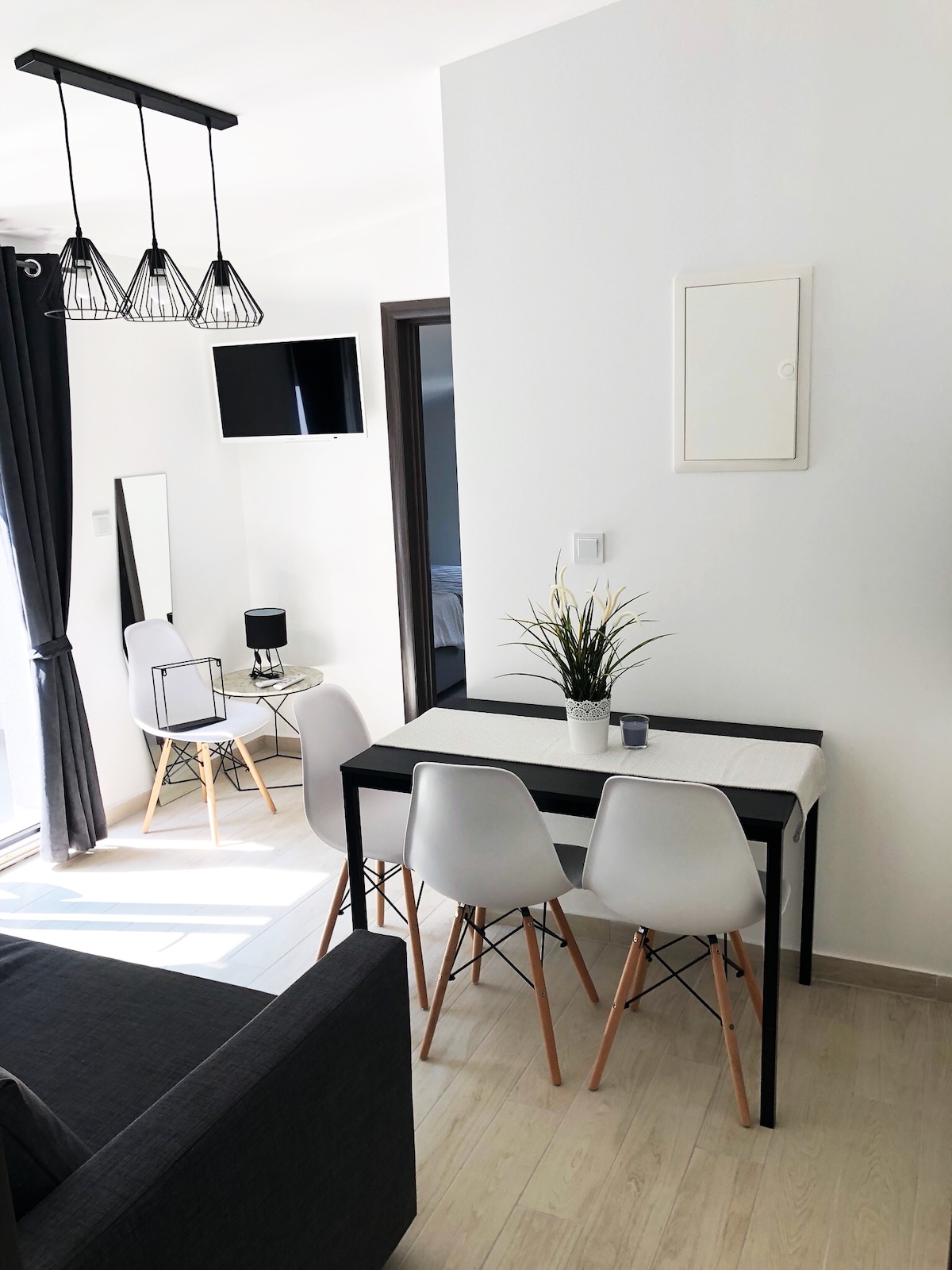 Enjoy this unique and newly decorated apartment, 600 m from the first beach on foot. The apartment is located on a hill. It is divided into two separate units, each of which is about 40 square meters in size. They do not have internal communication, so it is suitable for a vacation for couples/friends or families with older children, where everyone has their own privacy. The facilities are connected by an outdoor covered terrace. Most markets are 10-15 min walk from the apartment.