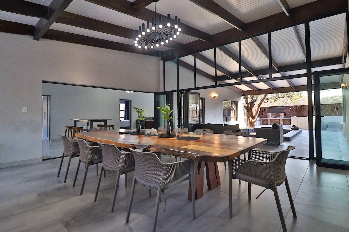 Uma bela casa moderna no mato adjacente ao Parque Nacional Kruger. Perfeitamente equipado para uma reunião de família. Animais não predadores vagam livremente e os 5 grandes muitas vezes podem ser vistos de pontos de piquenique ao longo do rio. O Parque Nacional Kruger fica a apenas 15 minutos de carro. A casa tem tudo para tornar sua estadia o mais confortável possível. A cozinha está totalmente equipada com todos os confortos modernos. DSTV completo está disponível, uma piscina de respingos e braai (churrasco) para aqueles longos dias e noites de verão.