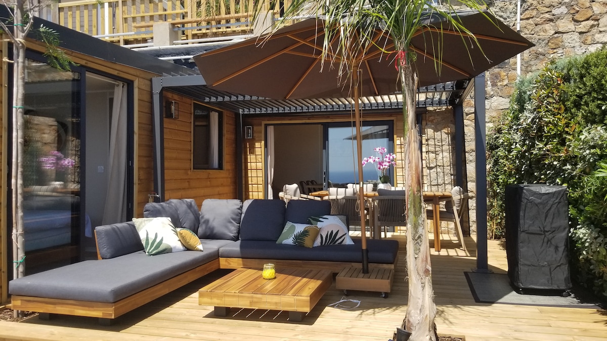 DOMÍNIO DA ILHA DE OURO Chalé com ar condicionado, vista panorâmica de tirar o fôlego, à beira-mar em Saint Raphaël Vídeo de apresentação, digite: Love azur 6 domaine de l'ile d'or, no seu mecanismo de busca. A felicidade é contagiosa, venha buscá-la em nossa casa! Nova acomodação atípica, de 45 m2 (junho de 2020), com ar condicionado, em um terreno totalmente equipado sob medida, em um ambiente único com vista panorâmica de 180° para o Mediterrâneo, sem vizinhança, em uma rua tranquila.
