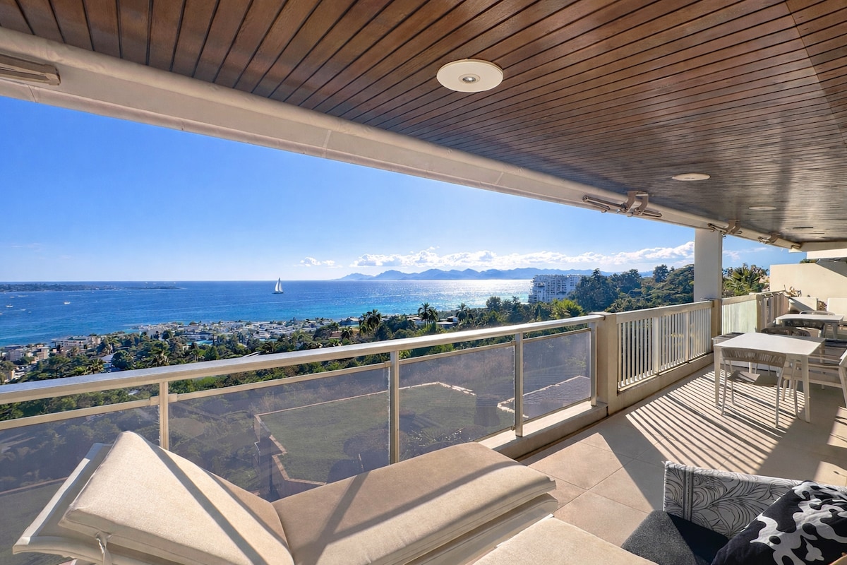 Vila em Super Cannes com vista para o mar e piscina