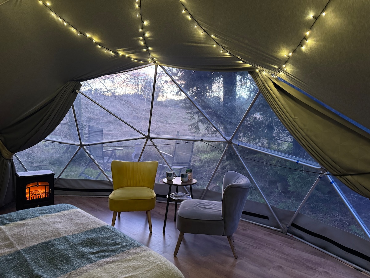 Cúpula geodésica incomum de 6 m - Distrito dos Lagos. Estadia romântica muito divertida num grande jardim isolado com área exterior privada para abrir campos vazios. Acolhedores, quentes e concebidos para estadias de inverno, mesmo com mau tempo! Estamos perfeitamente localizados para explorar o Lake District. Apenas a 8 minutos de Windermere, a 5 minutos do trilho de caminhada Dales Way. Máquina de café, micro-ondas e um pequeno frigorífico Sanita e lavatório localizados dentro da própria cúpula. Ginásio, passe de piscina de spa, com chuveiros, incluído. Apenas para adultos.