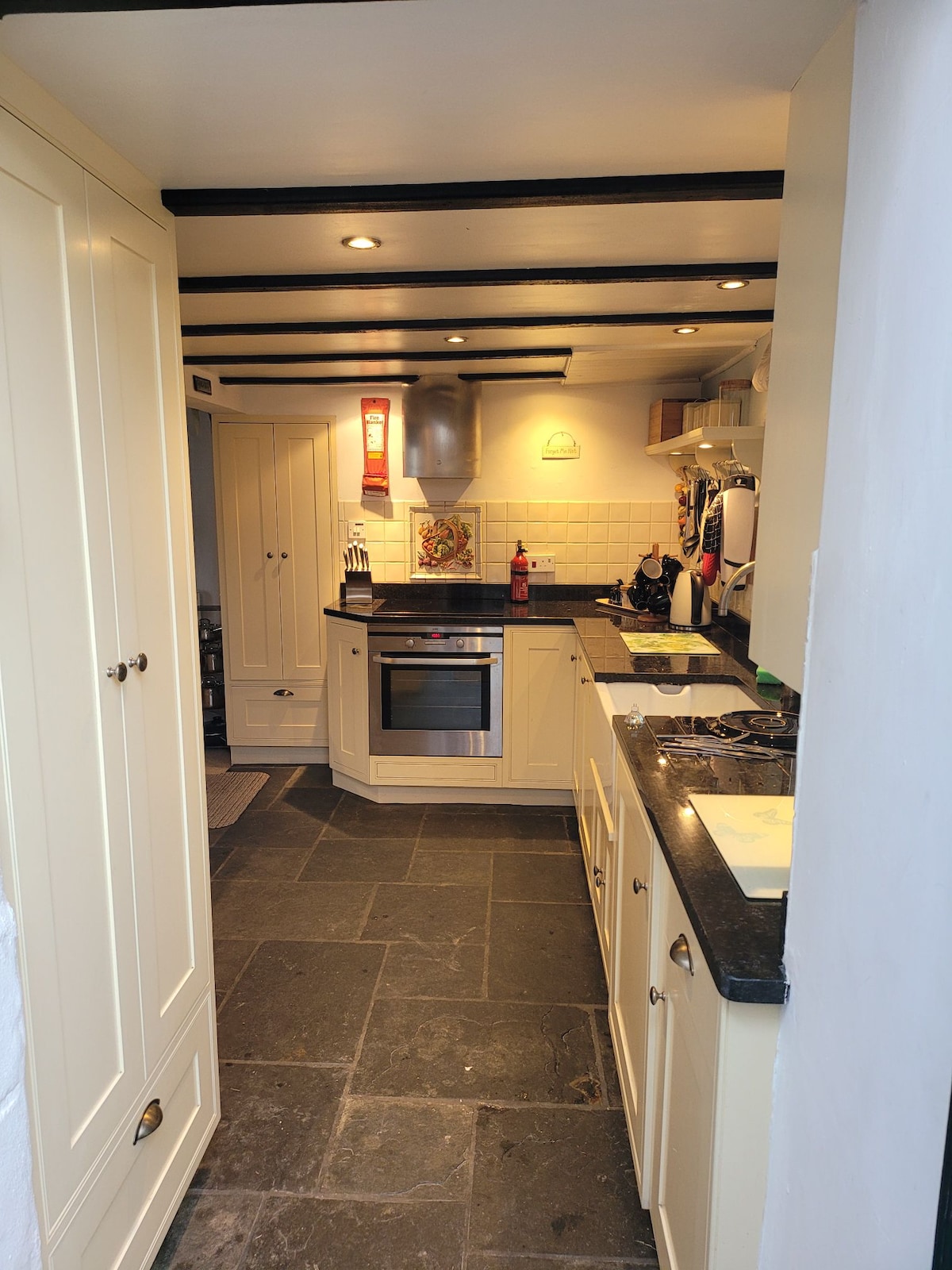 Scandi chic meets Cornish cool in this characterful 1850s Cornish stone cottage, tucked away on a pretty side street, yet moments away from Helston town centre with shops, cafe's, a small cinema and the CAST arts centre with pottery and yoga on your doorstep. Just a short drive to the sea and acclaimed restaurants of Porthleven. Watch the sunset from the window seat with views across the valley, while sounds of the church bells and the Helston brass band waft through the air.