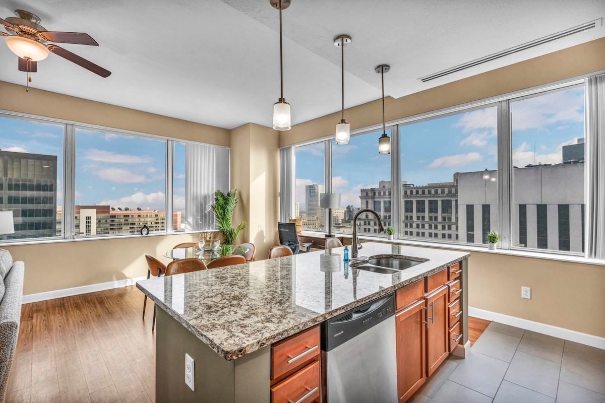 Stay at one of Cleveland’s premier luxury residences, a condo crafted for guests who value elegance, comfort, and convenience. With a Walk Score of 98/100, you’re only moments from the city’s best dining, nightlife, and attractions—then retreat to your private oasis to unwind in style. ✔️ Luxury 2BR/2Bath Condo ✔️ Open-Concept Living ✔️ Full Modern Kitchen ✔️ Smart TVs ✔️ High-Speed Wi-Fi ✔️ Workspace ✔️ Washer/Dryer ✔️ Parking available $ ✔️ 24/7 Security ✔️ Fitness Center See more below!