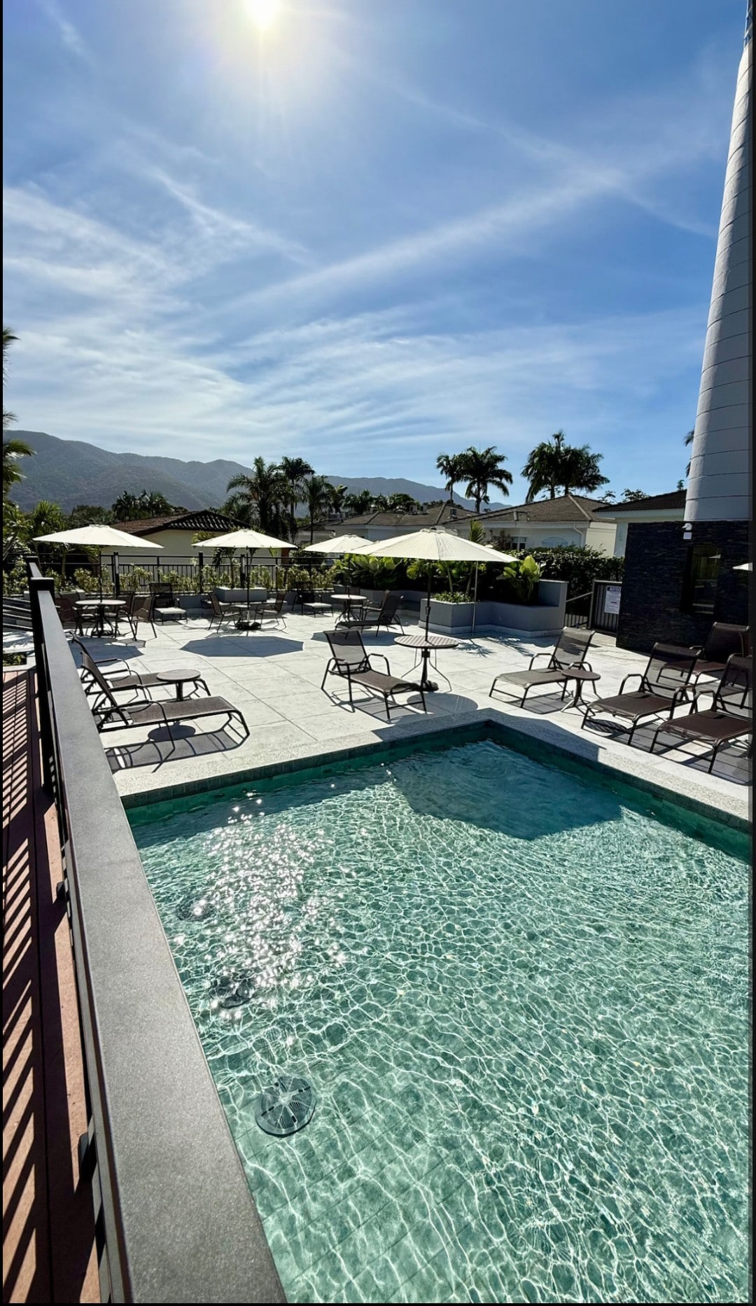 Condomínio fechado na praia da Baleia com 2 piscinas, uma de adulto e uma infantil e um SPA com hidromassagem, todas aquecidas. Salão de jogos, cozinha gourmet, quadra de tênis, campo de futebol e sauna. Ar condicionado no quarto e na sala e ventiladores de teto. O banheiro dispõe de um toalheiro elétrico. OBS 1 - A partir de 19/12 até janeiro reservas no mínimo de 6 dias. OBS 2 - Serviço de praia: Das 9h às 17h.
