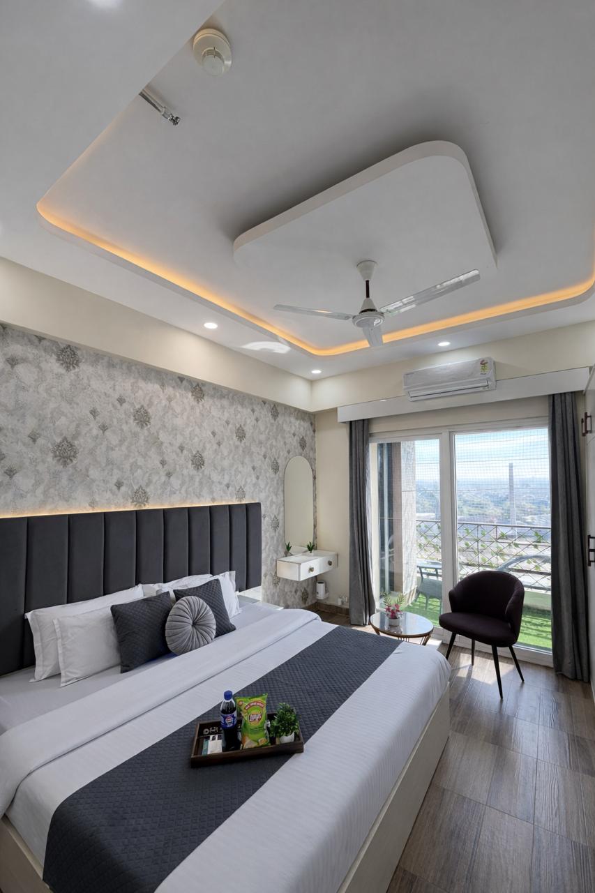 Welcome to Trovero Suites Nestled in the heart of Greater Noida, Near Expo Mart (8 km) ✨ What You’ll Love: ✔ Private Balcony – Enjoy the Mesmerizing scenic view ✔ Prime Location – Close to top attractions, restaurants ✔ Modern Comfort – A beautifully furnished space with a comfy bed, cozy seating, and stylish decor. ✔ Fully Equipped Kitchen – Cook your favorite meals with ease. ✔ Fast WiFi & Smart TV – Stay connected and entertained. ✔ Serene Ambiance – A peaceful Luxurious and private retreat