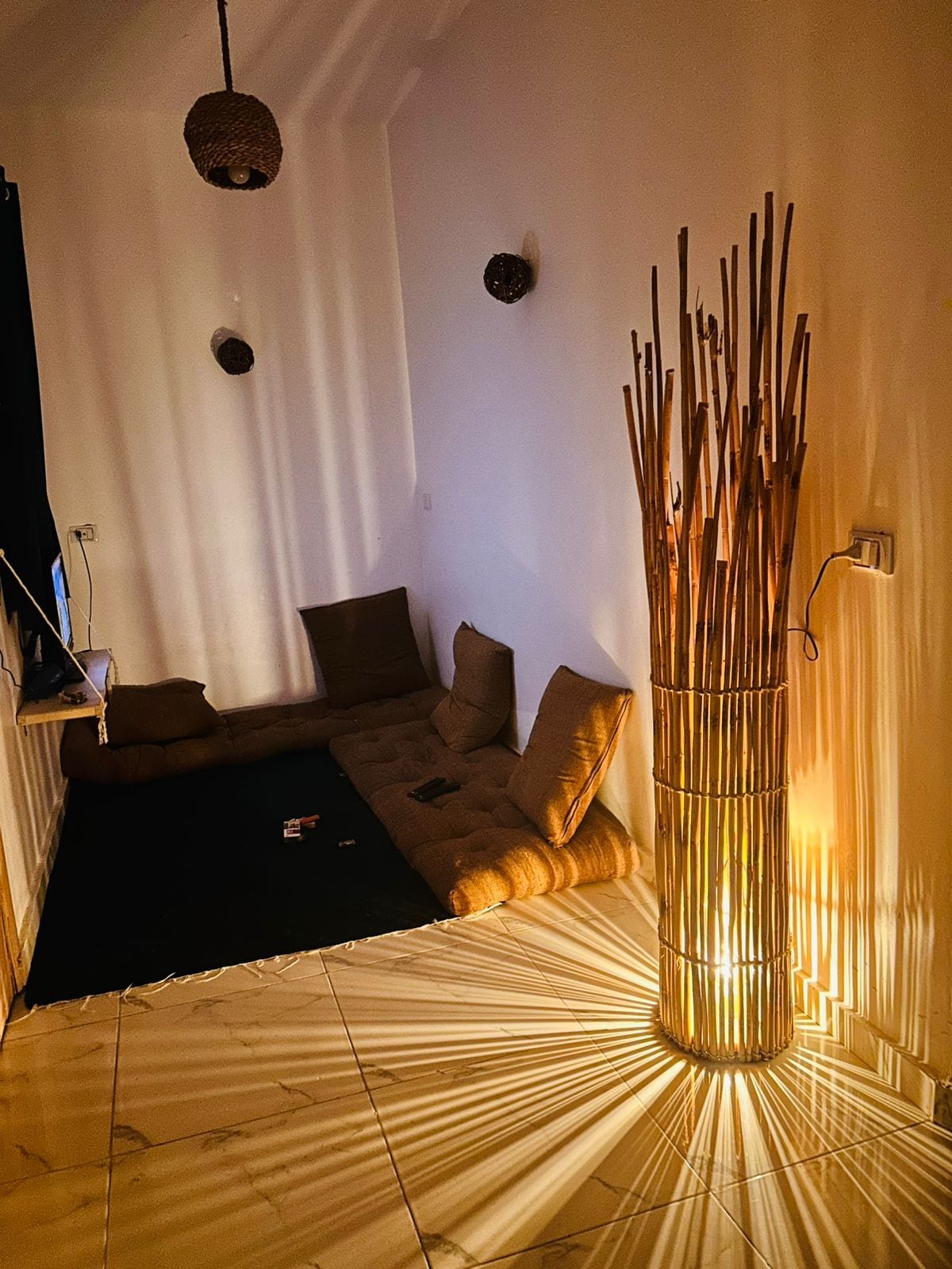 Cabana del mar é uma das pérolas escondidas de Assalah, que lhe promete umas férias inesquecíveis em Dahab . Localizado diretamente na Praia de Assalah (a poucos passos de Dar Dahab ) , desfrute da melhor vista para o mar do nascer ao pôr do sol sem ter de sair de casa ou simplesmente relaxar na bela varanda, onde pode desfrutar de uma vista panorâmica da Praia de Assalah e das montanhas enquanto relaxa na rede. POR FAVOR, NOTE QUE: Devido à lei egípcia: casais egípcios ou portadores de passaportes árabes têm de fornecer um comprovativo de casamento