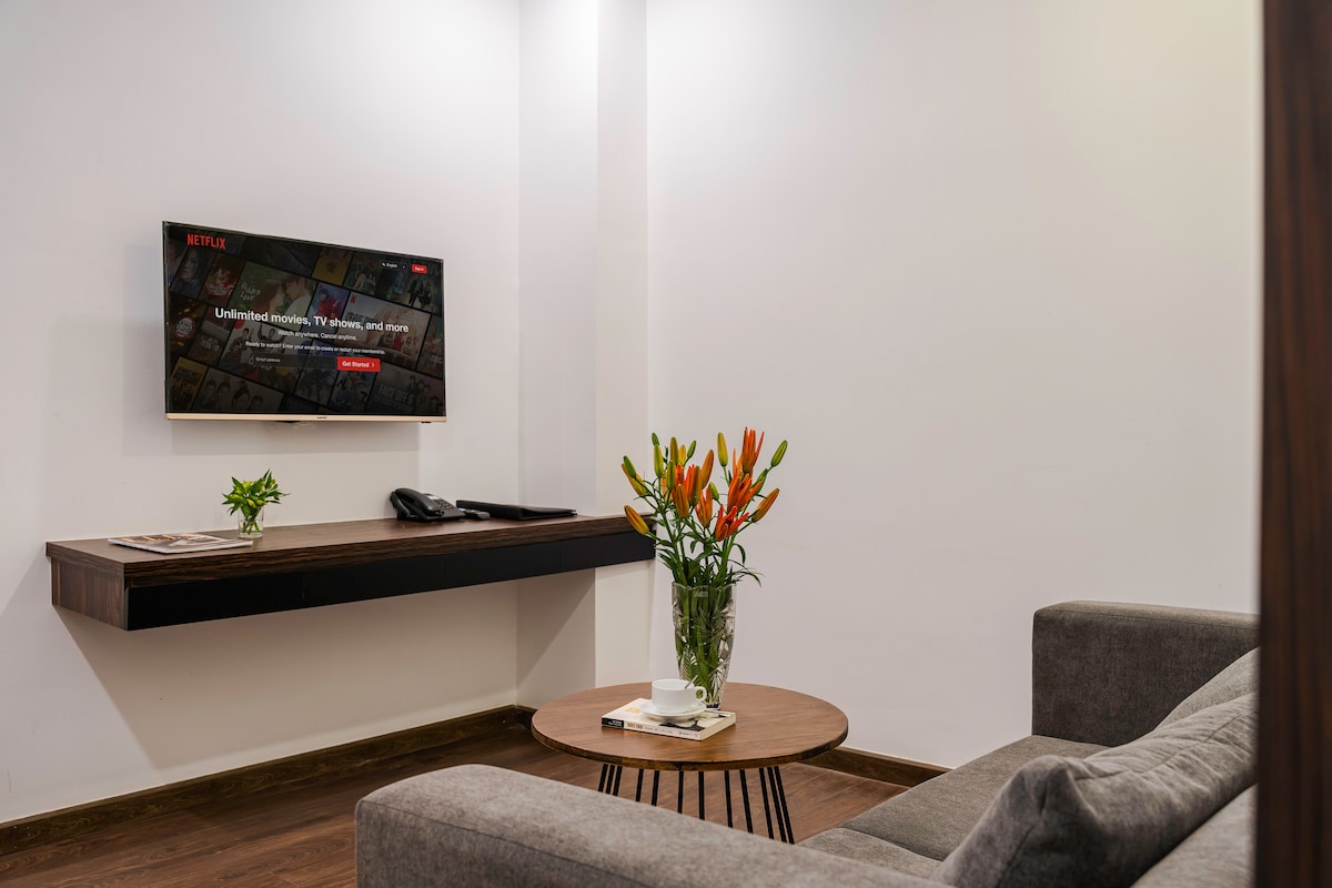 ✻ A penthouse apartment (120m2) features 2 bedrooms (1 king bed each room), 1 living room ✻ Located in the heart of the city. Plenty of famous landmarks, food and drink nearby ✻ Air conditioning is available. Fully equipped kitchen, washing machine, iron, hair dryer, etc ✻ Smart TV 43 inch. Fast wifi internet. Laptop friendly work space ✻ Free car parking on premise. ✻ 24/7 front desk support. Motorbike & car for rent, airport shuttle ✻ Private balcony w panorama city view