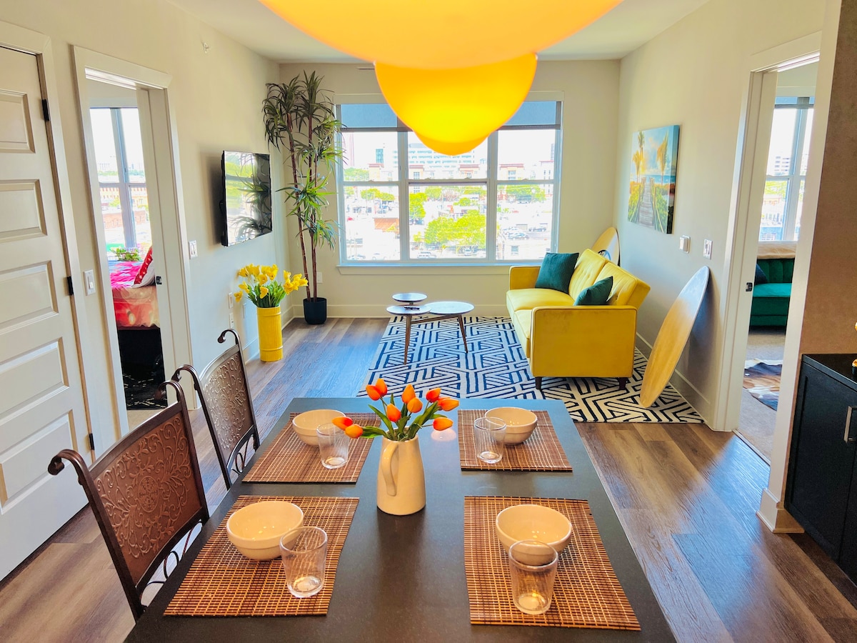 Experimente o luxo moderno no centro de Dallas! Desfrute de vistas para a piscina e para a cidade a partir de um andar alto, uma cozinha abastecida, lavandaria no interior, Wi-Fi rápido e muito mais. Caminhe até ao AT&T Discovery District, aos melhores restaurantes e ao Centro de Convenções Kay Bailey, a apenas 10 minutos a pé. Relaxe num arranha-céus rodeado por bares no terraço, comodidades de estilo resort e segurança 24/7. Com estacionamento gratuito no local! A sua escapadela perfeita em Dallas começa aqui.