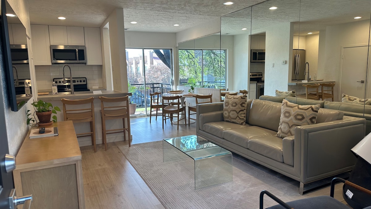 ★ Apartamento de luxo renovado com entrada privada num complexo boutique de Dallas ☞ Quintal relvado cercado de cedro (perfeito para cães) ☞ Escritório em casa dedicado + Wi-Fi de alta velocidade ☞ Smart TV de 65 polegadas + lareira de quartzo de luxo ☞ Banheira de hidromassagem com chuveiro de efeito chuva e varinha ☞ Cama king de peluche com colchão pillow-top + roupeiro com estação de maquilhagem ☞ 2 lugares de estacionamento adjacentes + entrada privada ☞ Porta para cães inteligente Wayzn (alojamentos selecionados) ☞ Máquina de lavar/secar roupa completa + balcão de jantar de quartzo Aceita animais de estimação. Sem depósito. Ideal para estadias prolongadas.