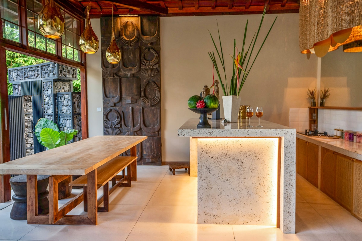 Our two-story residence captures the essence of serenity, featuring expansive living areas, spacious master suite with en-suite bathtub, bathroom and walk-in closet, fully equipped kitchen island, and private pool surrounded by a lush tropical oasis. We offer more than a stay; we create experiences. Enjoy a relaxing in-villa massage, or movie nights with a projector and popcorn. Each moment is curated to rejuvenate and inspire, creating a stay uniquely yours. Brand: @casacleobali