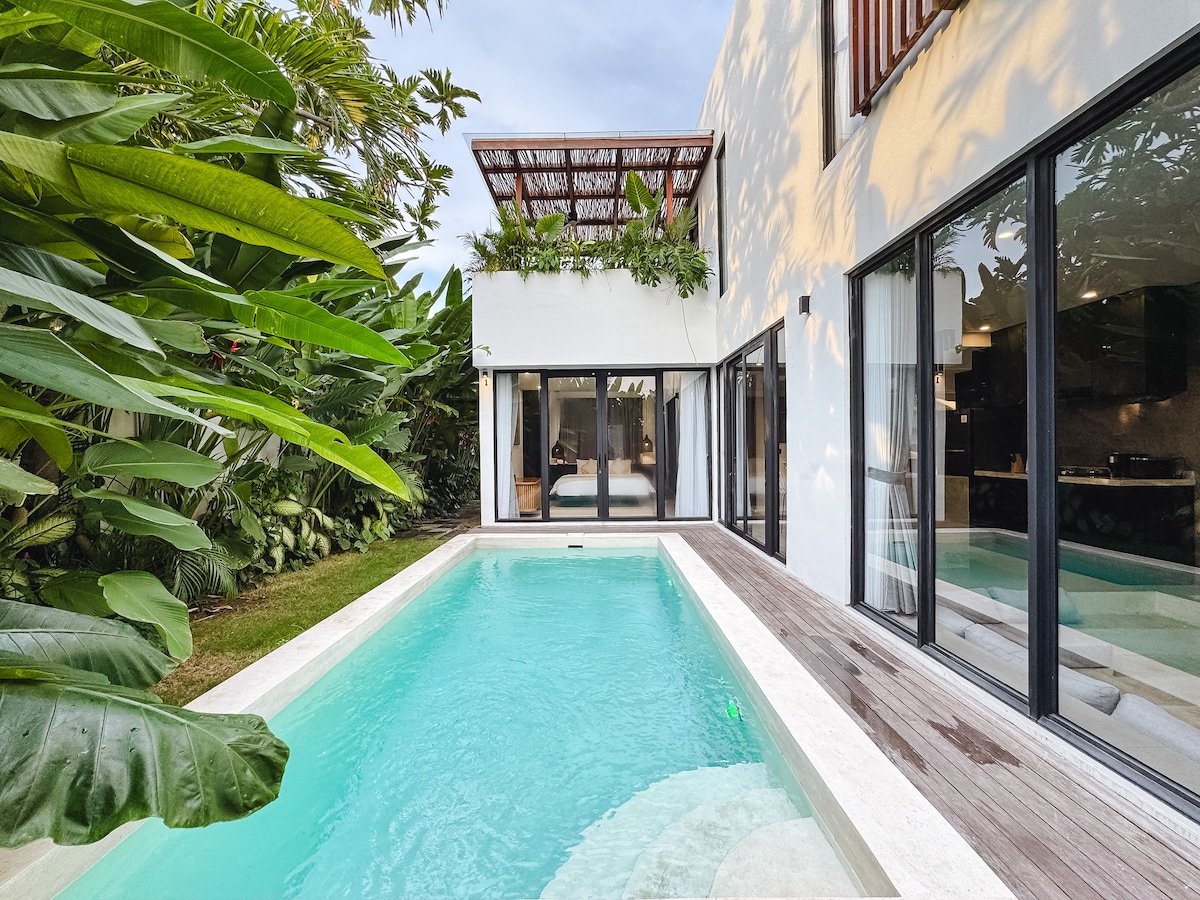 Faça uma escapadela no seu refúgio tropical privado em Canggu, a apenas 10 minutos da praia de Batu Bolong. Esta elegante moradia de 1 quarto é perfeita para escapadelas românticas ou a solo, com piscina privada, terraço no telhado, banheira de estilo spa e espaço de trabalho. Acorde para beber café sob as palmeiras, mergulhe sob as estrelas. Pacífica, privada e lindamente perto dos cafés, surf e cenário do pôr do sol de Canggu. A 🚧 construção começou recentemente em frente à moradia e pode causar ruído durante o dia.