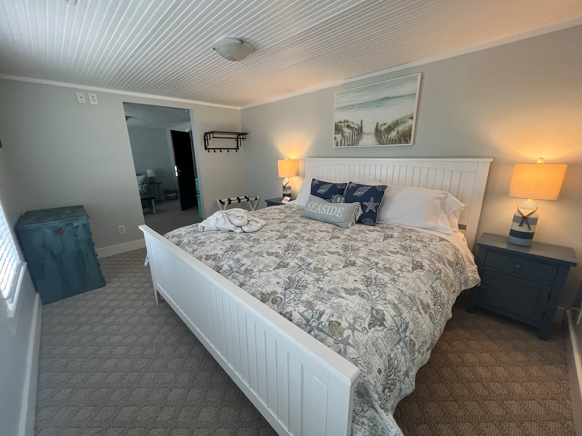 Find yourself at our serene, century-old inn...A true boutique hotel with a large front porch, multiple decks to chill out on, common areas include guest lounge/dining and library lounge...and only 3 mins walk from incredible Hatteras beaches! The Seaside Suite Sleeps 2 guests with a King Bed, a private bathroom, with adjacent dining and sitting area. Cooked Breakfast is included in the cost of stay.