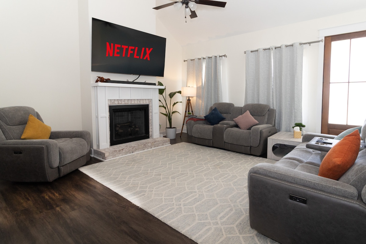 Traga a sua família ou grupo para este refúgio espaçoso perto do centro da cidade. Com uma cama king, cama queen, duas camas individuais XL e um futon. Passe os seus dias a desfrutar da sala de sol/sala de jogos com mesa de bilhar, matraquilhos e jogos de tabuleiro, ou relaxe na varanda que tem um campo de golfe. Desfrute de filmes e desporto na Smart TV de 85 polegadas. Cozinhe na cozinha bem equipada ou na nova grelha ao ar livre. Com áreas de estar convidativas e toques atenciosos em toda a casa, esta casa torna a reunião fácil e memorável.