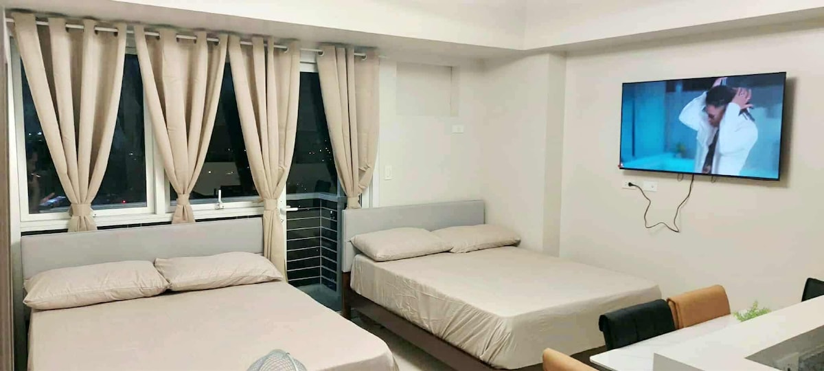 2 Bedrooms 1 Bathroom w/ balcony 1 free parking Third Floor NORTHPOINT Camella Condominium Bajada Davao City 5-10 min Abreza Mall, MDRMC, SM Lanang, SMX, Tebow , SPMC, USEP, SSS, Ritz, COA 15 min Samal Wharf, Airport, Azuela, Insular, Grand Regal, Dusit, ●Airconditioned rooms ●Free use of pool 4 pax Tuesday-Sunday. No pool on Monday(Cleaning day) ●Unlimited wifi 5G 100-500 mbps, Samsung 55" SmartTV ●with linens, towels ● Hot Shower, Bidet Check in 3pm Check out 11 am Thank you, Dia Mcco