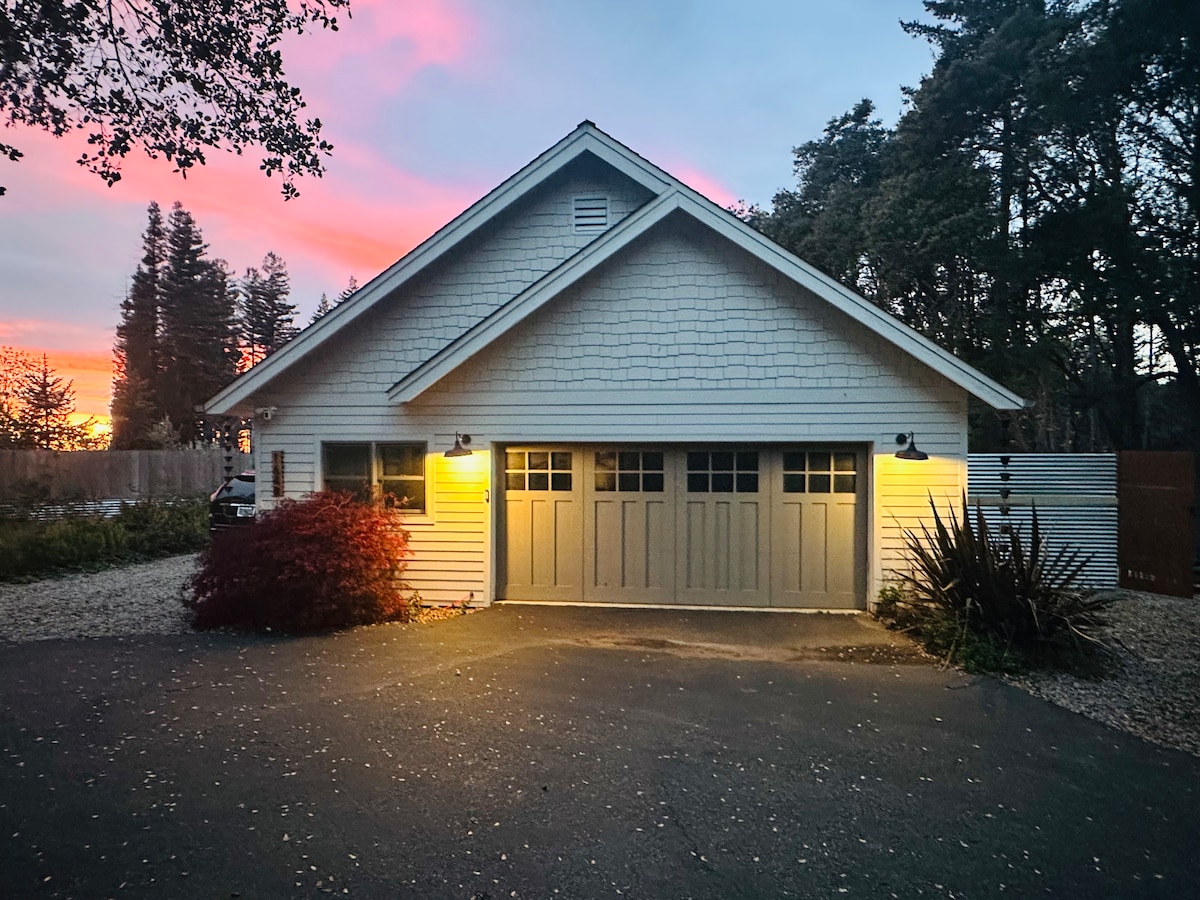 A estadia perfeita para aventureiros e entusiastas do relaxamento. (Licença 251052) Relaxe com jogos de quintal e churrasco, aproveite o sol do deck ou relaxe numa rede sob sombra de sequoia. Aconchegue-se junto à lareira, desfrute de vistas para a floresta através de claraboias ou veja filmes no ecrã grande. Explore trilhos de caminhada a poucos passos de distância, vastas trilhas de mountain bike (10 min) ou vá à praia e surfe (13 min). Delicie-se com degustação de vinhos numa vinha de montanha local aninhada entre os gigantes da sequoia (5 minutos).