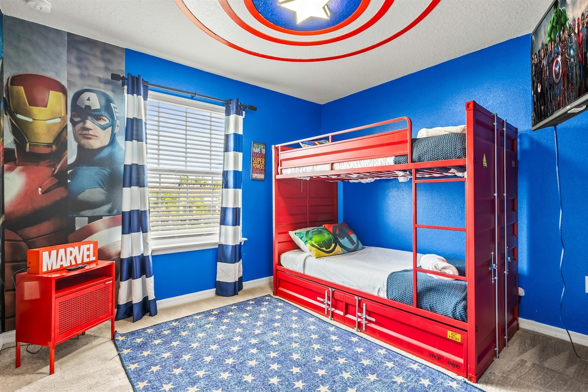 🏝️ Bem-vindo à Themed Retreat Villa – Uma escapadela familiar perto de Orlando 🌴Pet Friendly Entre numa experiência de férias em família única nesta moradia temática de 4 quartos e 3 casas de banho, situada no mesmo bairro procurado que a Blue Paradise Villa. Concebida para proporcionar diversão, conforto e memórias inesquecíveis, esta casa oferece uma estadia totalmente imersiva com quatro quartos temáticos únicos: 🎥 Avatar 🌿 Jungle Cruise 💚 Shrek 🌊 Bob Esponja Calças Quadradas