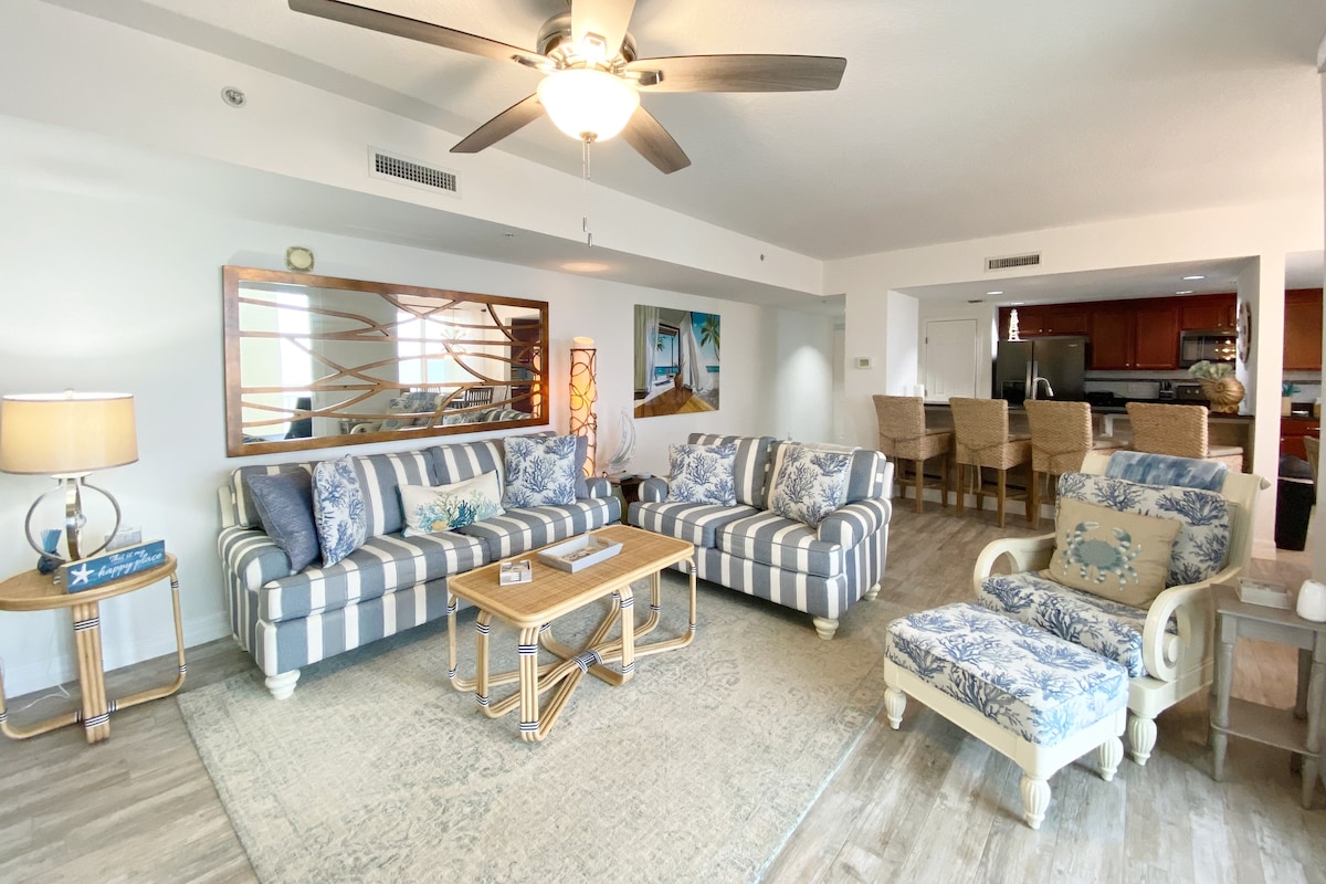Praia como um morador local com sua pessoa especial ou toda a família. Desfrute do amanhecer e do pôr do sol da ampla varanda com vista para o mar e para o cais SunGlow. Este espaçoso apartamento familiar foi recentemente reformado e possui ar condicionado novo, uma cozinha moderna bem equipada, TV 55 polegadas ultra 4k, uma luxuosa cama king size, móveis novos, sofá-cama de espuma de memória de gel, lençóis de bambu, cozinha totalmente equipada, coleção de jogos e todos os brinquedos que você precisa para a praia.