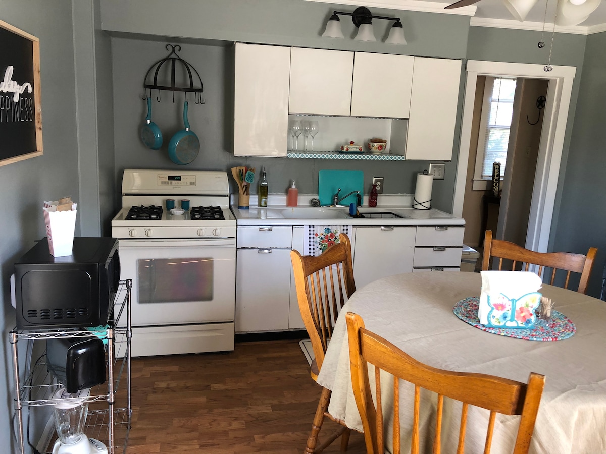 Sem taxa de limpeza Este apartamento exclusivo foi construído em 1925 e está localizado atrás da casa principal que foi construída para uma irmã Kell, que é um nome bem conhecido em Wichita Falls. O apartamento está no andar de cima com uma espaçosa área de estar e quarto tudo em um. Tem uma grande área de cozinha com todas as comodidades de cozinha necessárias. O banheiro tem uma banheira/chuveiro e está configurado para todas as suas necessidades. Este Rancho Rústico fica em um bairro agradável e perto do centro da cidade, Força Aérea de Sheppard. Um refúgio tranquilo