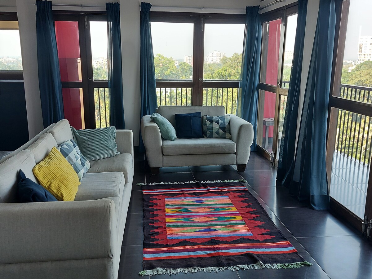 Uma jóia no meio da movimentada comilla. O apartamento tem a melhor vista do lago. Pode-se passar a vida na sala de estar com o lago e os livros. Você vai experimentar um chique e ainda um lugar atemporal. 2 quartos com AC, jantar, sala de estar e varanda longa. Cozinha aberta totalmente equipada. Um espaço muito seguro, limpo e confortável.