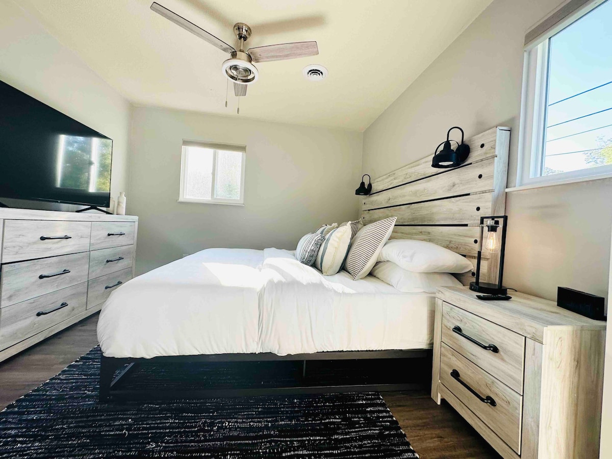 Venha experimentar e desfrutar de uma estadia tranquila no Luxury Barn. Situa-se na sua própria propriedade separada da casa principal e também tem uma cerca de privacidade que bloqueia a vista da casa principal com o seu próprio estacionamento. É um conceito aberto (estúdio) com uma casa de banho privativa. Este celeiro luxuoso é aquecido com aquecimento radiante no chão e está sempre quente e acolhedor. Desfrute de uma cozinha totalmente funcional, sofá reclinável, TV de 70 polegadas e Wi-Fi e uma cama queen size. Venha desfrutar de uma estadia no Luxury Barn.