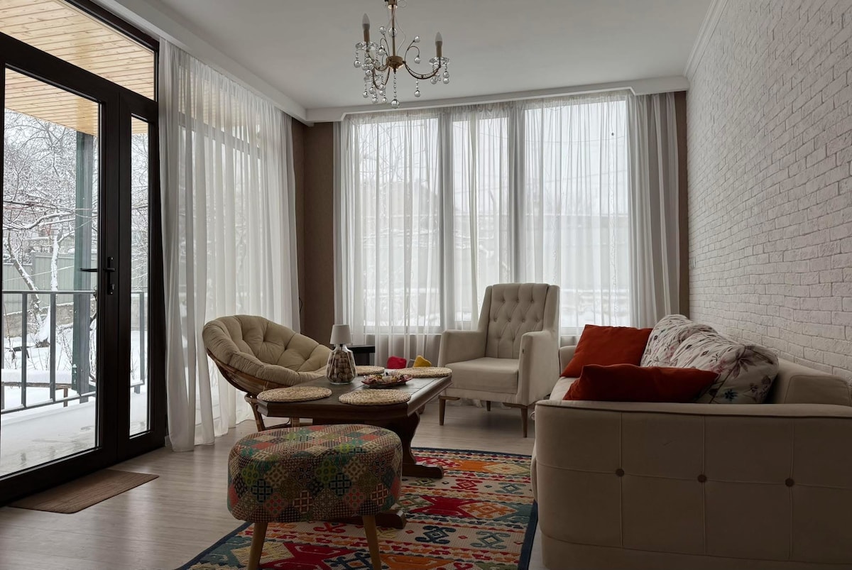 The elegant apartament offers everything you need for a comfortable stay. it is fully equipped with all essential amenities.The location is excellent - surrounded by local shops and just short distance from the city center. From the apartment, you can enjoy a breathtaking view of the Cauncasus Mountains, which can be seen beautifully from the windows. Whether you're visiting fro relaxation or exploration, this cozy home is the perfect place to stay in Dedoplistskaro.