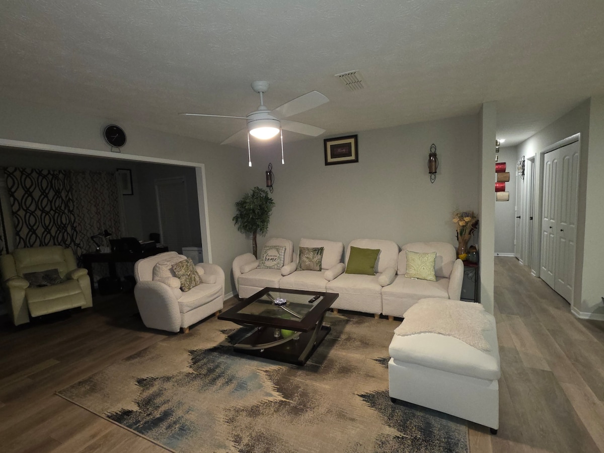 Venha desfrutar desta casa lindamente concebida e recentemente renovada! Roupa de cama confortável, uma casa de banho totalmente equipada, uma decoração moderna e uma excelente localização perto das principais autoestradas da ATL tornam cada unidade uma estadia fácil e agradável. Com 3 unidades acolhedoras, separadas e privadas (2 - unidades 2BR e 1 - unidade 1BR), esta casa chique e moderna é perfeita para uma viagem individual ou para até 10 pessoas!! (com base na disponibilidade) *Este anúncio é para 1 das unidades 2BR. Para a unidade 1BR, pesquise "Quaint Quarters | * De 1 a 10 Hóspedes *"