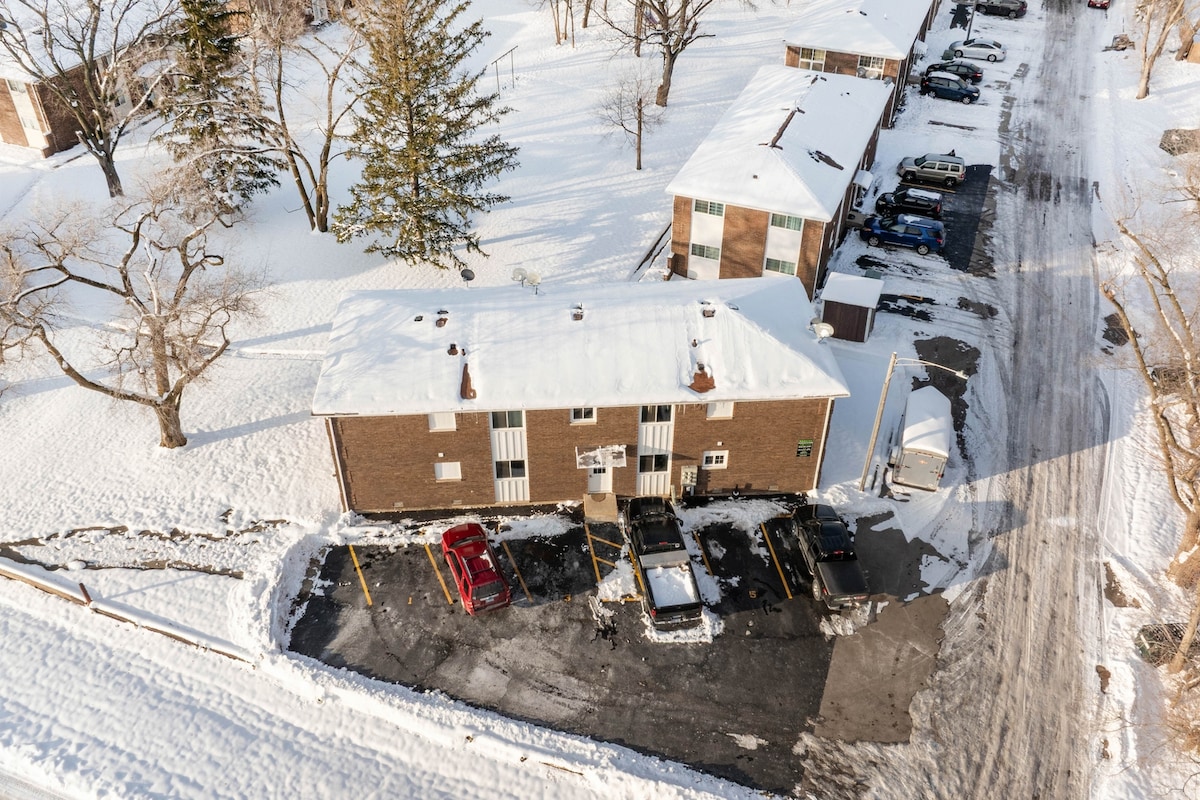 Bem-vindo à sua casa perfeita longe de casa! Ao entrar nesta encantadora unidade rural em Dekalb IL, será recebido por uma atmosfera convidativa. Está aninhado num edifício multifamiliar tranquilo. Localização ideal. Apenas a uma curta caminhada do centro da cidade de Dekalb, que consiste em pequenas lojas, jantar e bares ou a cinco minutos de carro do NIU ou do Dekalb Data Center. Quer esteja na cidade a negócios, lazer ou ambos, reserve agora e experimente o melhor que uma cidade pequena pode oferecer.