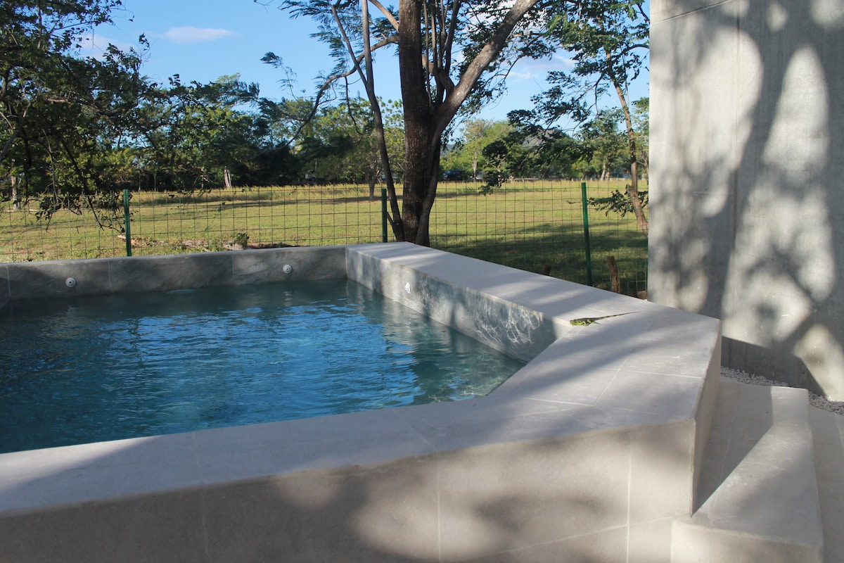 Somos o Hotel in the Shade, um hotel boutique de gerência familiar em Tamarindo. Pretendemos oferecer aos nossos hóspedes o tipo de espaço onde gostaríamos de ficar. É por isso que nos concentramos na limpeza, conforto e decoração contemporânea. Com uma varanda privada com vista para a nossa piscina, este quarto queen é perfeito para aqueles que querem desfrutar da energia do hotel e ter o seu oásis privado. Inclui acesso ao nosso espaço de coworking com ar condicionado, perfeito para profissionais que viajam e nómadas digitais.