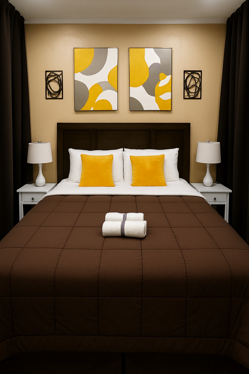 Enjoy a stylish experience at this centrally-located place with large king size beds with two Bedrooms and two baths!