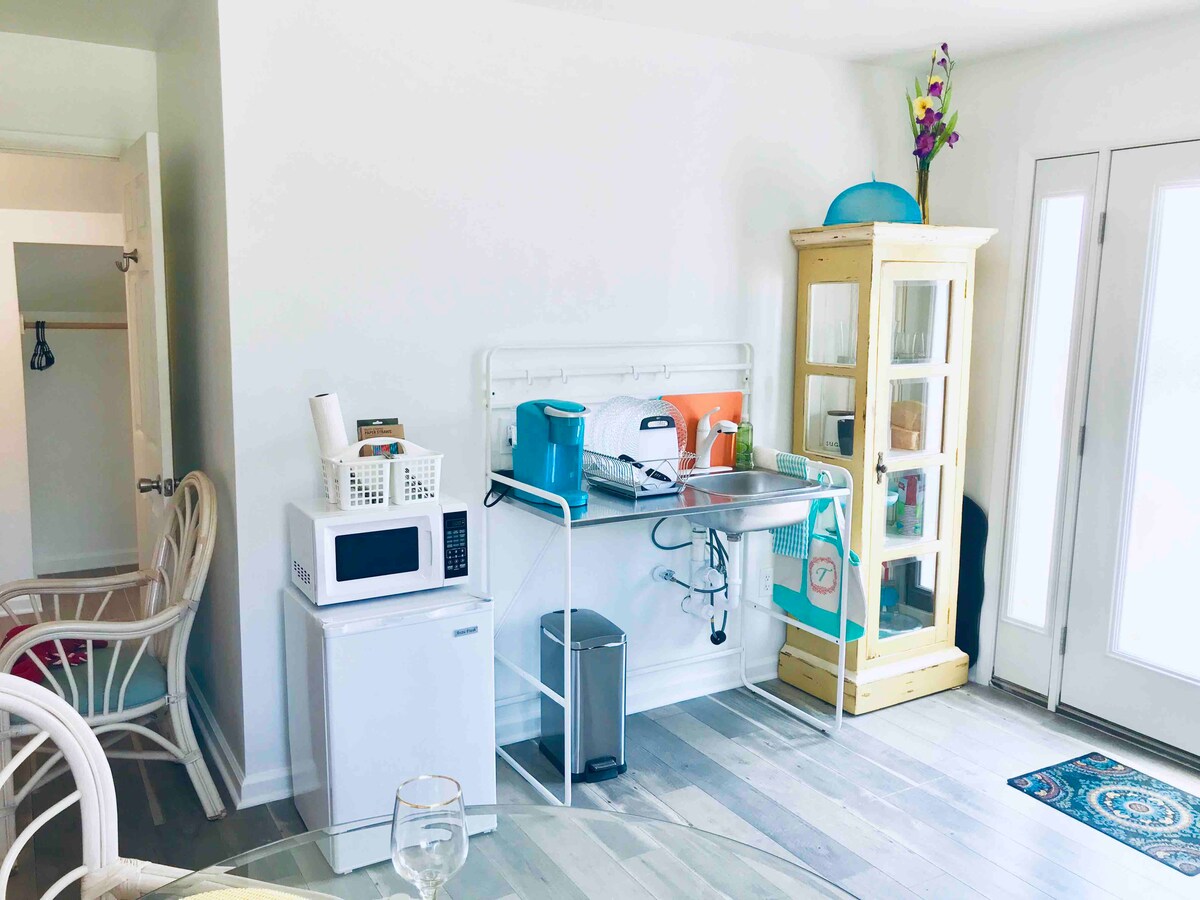 Timmy's Treeside em Rehoboth Beach, DE é um dos dois aptos com entrada/deck privado, em 2 acres, a uma milha da trilha Rehoboth-Lewes e a 5 minutos de carro do calçadão/Oceano Atlântico. Queen e um sofá-cama para 2 a 3 humanos e todos os seus cães. O seu grande deck é um poleiro alto para ar fresco, contemplação de estrelas, diversão 420, banhos de sol e um refúgio para cães. 2gb Wifi, Roku TV, chuveiro, mini-cozinha/grelhador/churrasqueira e trilho no quintal. Tanger Outlets, restaurantes para cães, Revelation Brewery e The Pond estão a poucos minutos. Estacionamento EZ +tomadas