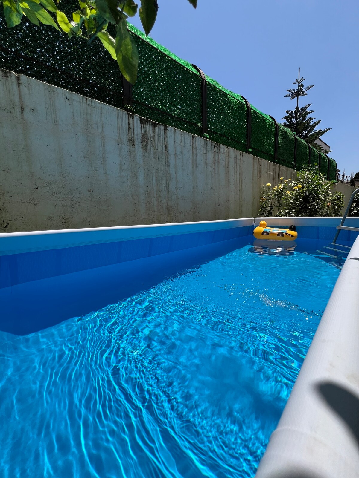 Espaço familiar e respeitoso Um apartamento moderno de dois quartos muito agradável de 50 m2 localizado no piso do jardim numa moradia privada numa área residencial de Dely Brahim. O apartamento tem uma boa cozinha aberta para a sala de estar com vista para um pequeno jardim privado. O apartamento tem uma suite principal com uma bela casa de banho. O apartamento tem a sua própria piscina privada de 2m/4,6m acima do solo, bem como o seu próprio jardim privado sem vizinhos em frente para máxima privacidade.