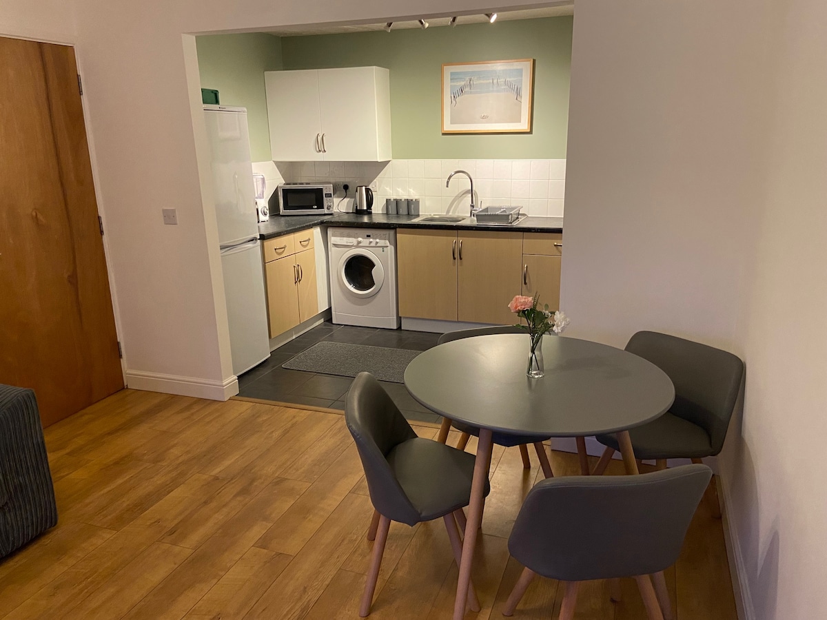 Apartamento inteiro de dois quartos, 4º andar superior (elevador agora fixo) com um lugar de estacionamento. 10 minutos a pé para o centro da cidade, 7 minutos de táxi para a estação de comboios. Dois quartos separados, (1 cama king/1 cama de casal pequeno). Sala de estar/cozinha em plano aberto, casa de banho separada e armário de arrumação. Nova TV 4K com Netflix/Amazon Prime/YouTube. Wi-Fi rápido. Congelador de frigorífico, máquina de lavar roupa, fogão e todos os itens domésticos esperados. Anfitrião local disponível para quaisquer questões. Acesso às chaves 24 horas por dia, 7 dias por semana.