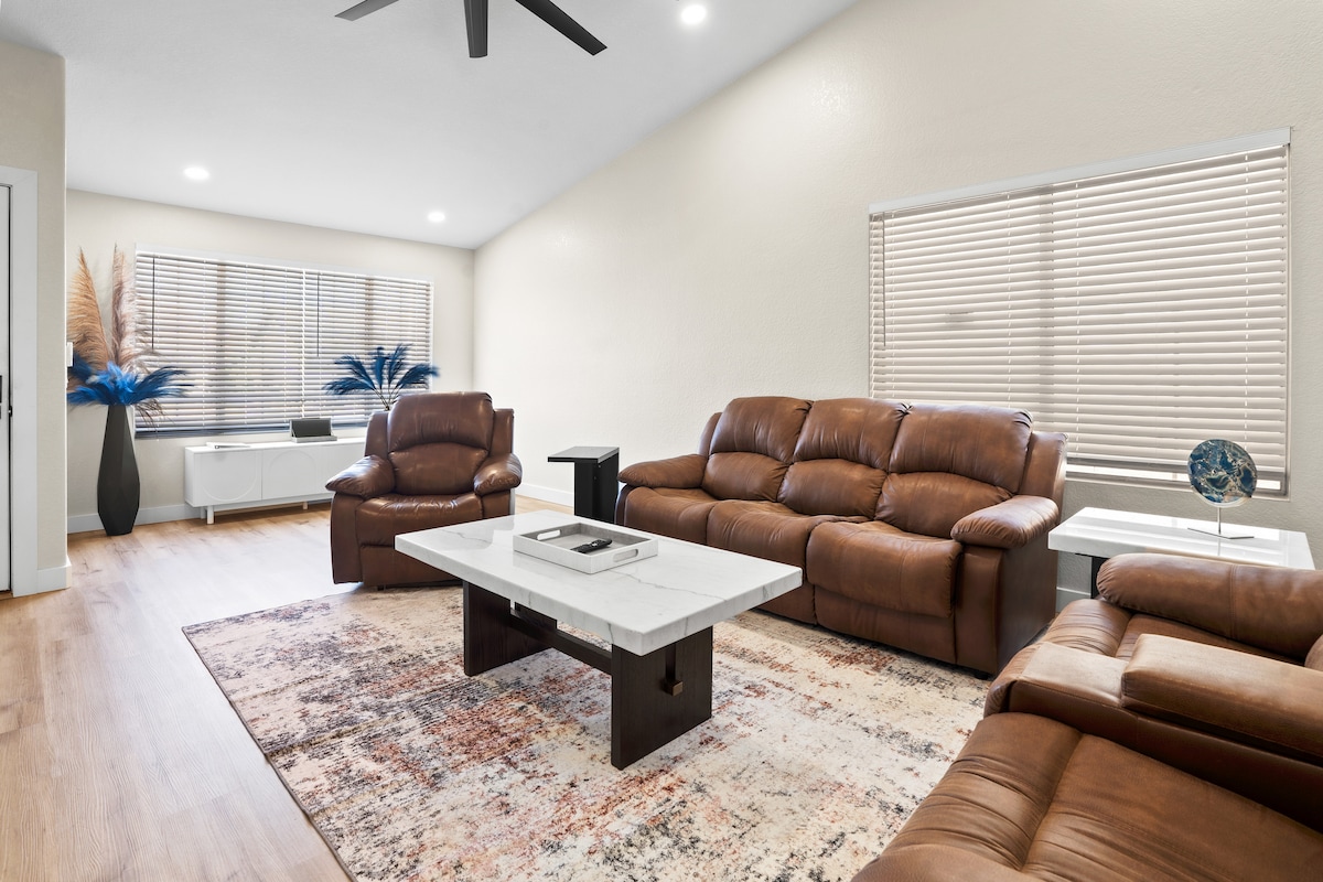 Bem-vindo à Casa Artesanal no deserto. Há uma grande área externa com piscina aquecida, churrasqueira e mesa de fogo de propano. O aquecimento da piscina está incluído no custo da sua estadia de outubro a maio. Você vai gostar de se divertir na cozinha do chef totalmente equipada com eletrodomésticos atualizados e uma fritadeira a ar no forno. As camas confortáveis são de espuma de memória e os banheiros são ambos atualizados. Pule o trânsito do dia do jogo/show e opte por uma caminhada fácil. Estamos localizados a 0,8 milhas do State Farm Stadium.
