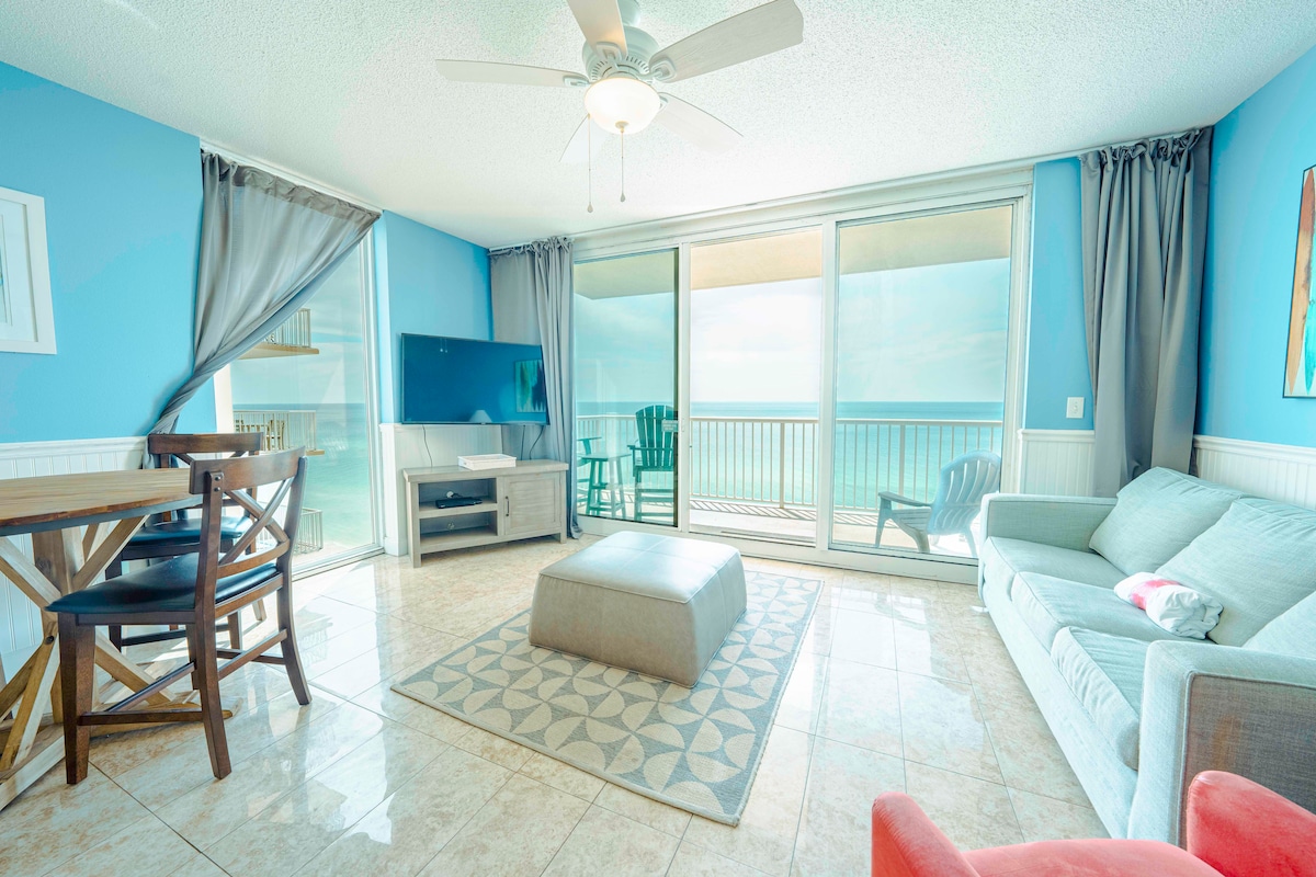 Elegant 1BR/2BA condo at Majestic Sun with breathtaking Gulf views from the spacious 10th floor balcony. Stylishly furnished with a coastal touch, it features a king bed, ensuite bath, hallway bunks with their own TV featuring Netflix, and a queen sleeper sofa. Enjoy a full kitchen, high-speed Wi-Fi, and TVs in every room. Located in the A building near covered parking with easy access. Guests return year after year for the ocean and beach views, comfort, and unforgettable beach experience.
