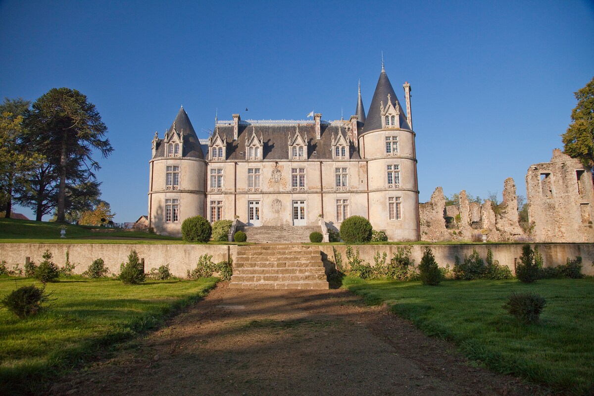 Construído entre os séculos XV e XVI, o castelo está localizado a 5 km de Vouvant, uma das mais belas aldeias da França. Você terá acesso a: Um quarto de hóspedes para duas pessoas com entrada privativa e banheiro privativo com chuveiro também. Uma sala de estar privada com bar para tomar café da manhã, descansar ou passar a noite. Uma cozinha profissional só para você. Um jardim francês. Uma piscina aquecida segura de 10 metros de comprimento.