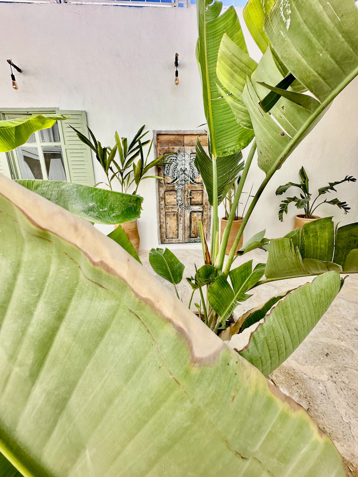 Riad luminoso com pátio e vista para o mar no terraço
