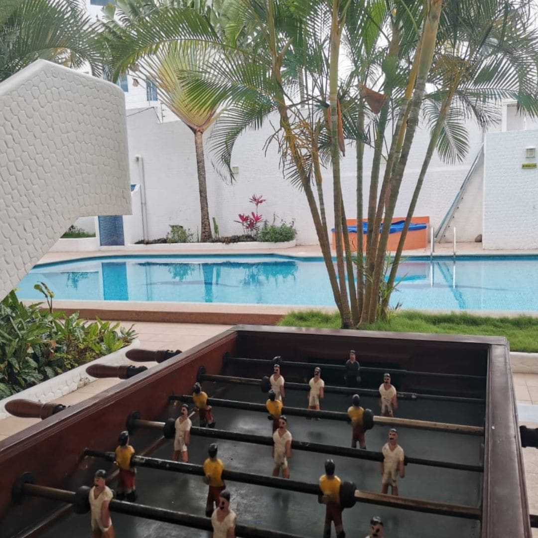 Localizado em Tonsupa, oferecemos uma estadia de qualidade, o apartamento tem uma varanda com vista para o oceano. Tem 2 quartos, com capacidade para 6 pessoas, cozinha totalmente equipada, TV, cabo, Internet e ar condicionado. Na varanda tem uma jacuzzi e uma mesa de jantar, para desfrutar com a melhor vista. Há duas piscinas, uma ao ar livre, com a área de recreação infantil, e outra coberta e aquecida, tem 4 banhos de hidromassagem, sauna, banho turco, ginásio, vários campos e mini-golfe.