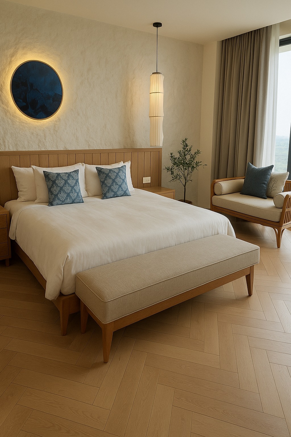 Designed for relaxing getaways and extended stays, our pool & partial sea-view studio is shaped by the ocean lifestyle. Ideal for couples, families, or long-stay guests, this beachfront resort invites you to slow down, enjoy blue views, balance work and rest, and feel right at home. - Special Long-Stay Offers Weekly stays (from 7Ns): Free airport drop-off service Monthly stays (from 30Ns): Free gym access (400m from the resort) or a 70-minute Vietnamese spa treatment (one time per stay)
