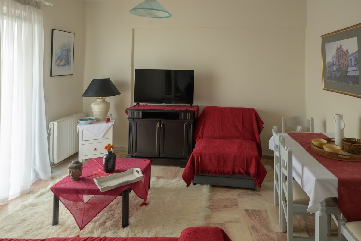 Bem-vindo à rainha do mar Egeu, a ilha de Lesbos. Seu alojamento é um apartamento de 45 m² no primeiro andar, a poucos passos do mercado de rua de Mytilene que pode acomodar até 4 pessoas. Uma joia escondida da cidade, perto de tudo o que você pode precisar. O APARTAMENTO SERÁ HIGIENIZADO ANTES DE CADA ESTADIA.