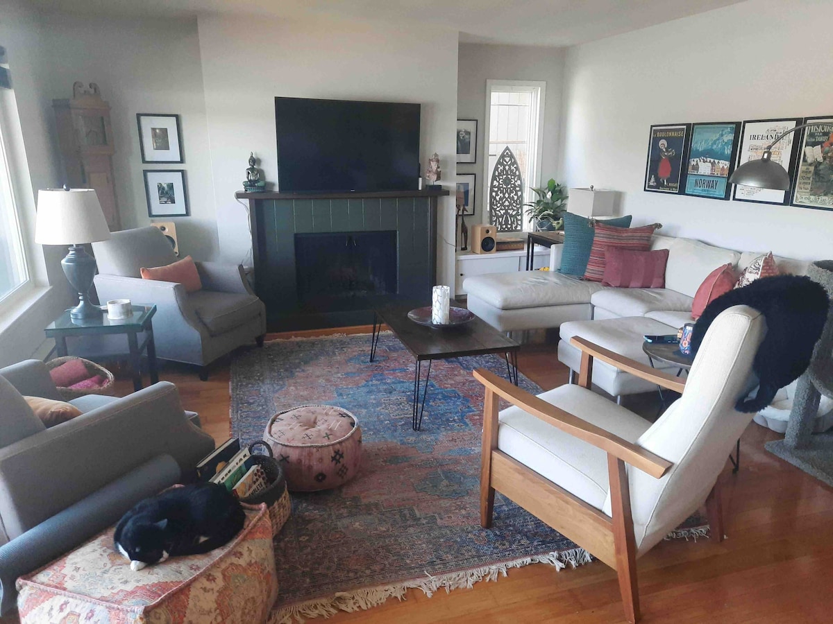 Planeie a sua escapadela na incrível cidade costeira de Dillon Beach! Esta casa de campo luxuosa e acolhedora com vista para a água é moderna, limpa e está equipada com comodidades para a sua incrível escapadela. Vai adorar os espaços tranquilos e os interiores confortáveis (pense numa cabana de surfista combinada com um spa). Estamos a poucos minutos da costa, de trilhos para caminhadas, da mercearia e do restaurante da aldeia, e a uma curta viagem de carro de imensas coisas para fazer. Temos roupa de cama e produtos de alta qualidade e também oferecemos snacks produzidos localmente à sua chegada.
