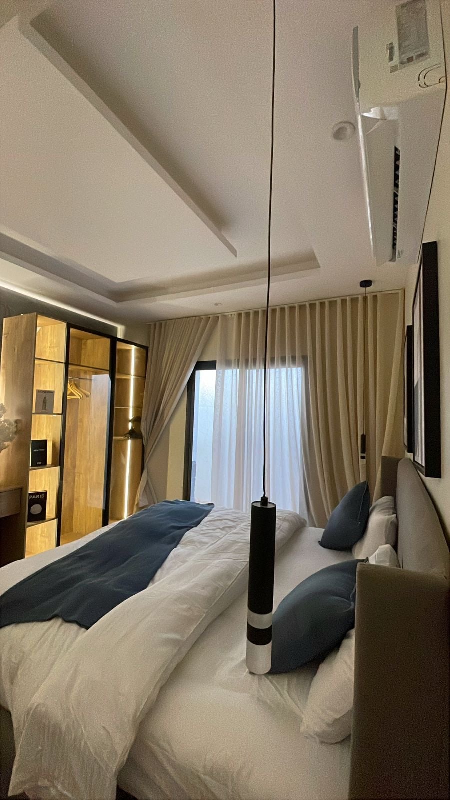 Um apartamento de hotel com total privacidade, entrada autónoma, uma localização privilegiada perto da pista desportiva, vários restaurantes, cafés e complexos com todos os serviços à sua volta. Desfrute de uma estadia especial e confortável: - Quarto de cama integrado - Lounge integrado com ecrã inteligente de 58 polegadas e canto de hospitalidade para uma estadia integrada (café, chá, água). - Água com todos os seus acessórios - Caldeira, frigorífico , ferro de engomar Dispositivo de aromaterapia - Serviço de limpeza - Internet gratuita. Esperando uma estadia agradável