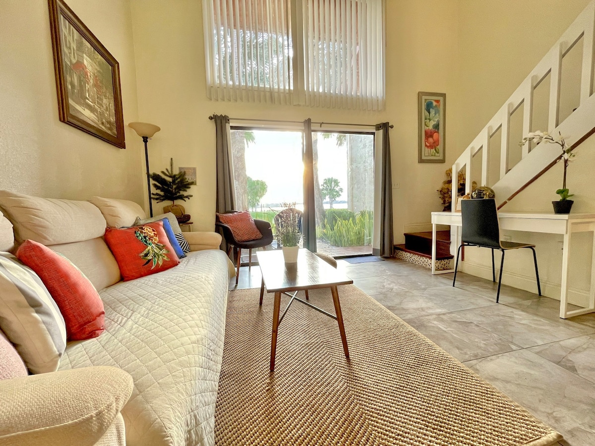 Moradia Boho-Moderna Chique 2BR à Beira do Lago! Relaxe com os seus entes queridos e explore o melhor de Dr. Phillips, a poucos passos dos melhores restaurantes de Orlando na Restaurant Row, além de I-Drive, Disney, Universal, SeaWorld, Whole Foods, Trader Joe's, Publix, Target e Walmart, tudo a 6 milhas! Tem uma cama queen no primeiro andar e 2 camas queen no andar de cima. Tome o seu café da manhã junto ao lago tranquilo antes de começar a sua aventura. Perfeito para férias em família ou viagens de trabalho. Adoraríamos hospedar a sua próxima estadia em Orlando!
