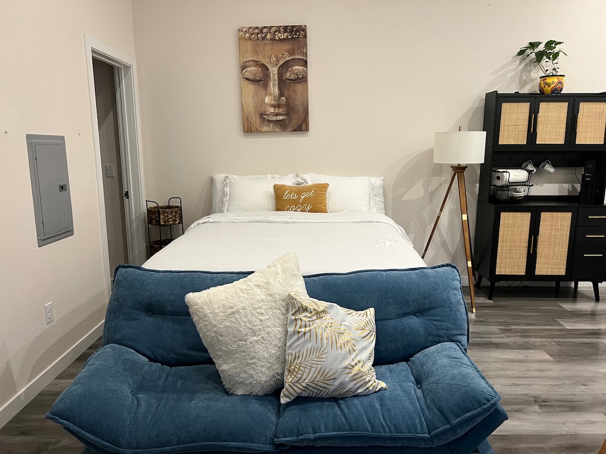 O estúdio de hóspedes East Sac Hive fica no centro do melhor bairro de Sacramento, construído na década de 1920, e estamos orgulhosos por partilhar a nossa cidade consigo. O nosso estúdio é pitoresco e acolhedor, mas oferece todas as comodidades que esperaria num espaço confortável. O micro estúdio tem cerca de 230 pés quadrados e o tamanho perfeito para dois adultos ou um adulto e uma criança. Talvez até consiga ver a atividade agitada da nossa colmeia de abelhas urbanas no telhado!