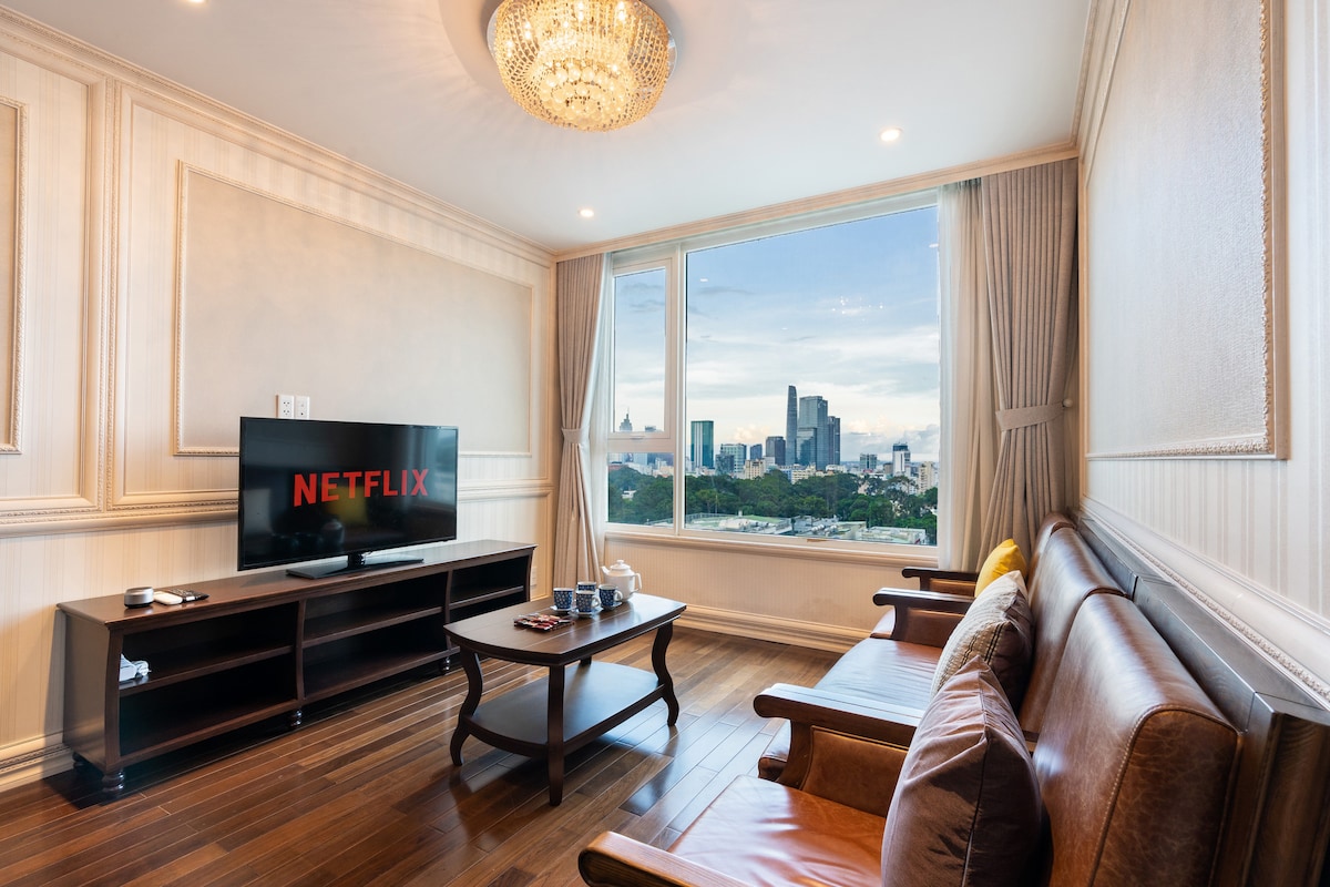 Estúdio de】 luxo【 urbano em Ho Chi Minh CBD | 45㎡ Vista panorâmica | 5 minutos do centro 🏙️ Destaques: • Localização privilegiada: 2 minutos a pé de cafés/restaurantes/lojas de conveniência, 5 minutos do supermercado, 600 metros da Igreja Rosa • Sala de estar premium: janelas do chão ao teto, TV Samsung Frame, colchão Emma, fechadura inteligente + segurança 24/7 • Preparado para trabalho: fibra de 200 Mbps, espaço de trabalho de 1,5 m • Vantagens: estacionamento gratuito para motos + limpeza quinzenal (apenas para estadias prolongadas) Check-in 🔑 inteligente: acesso remoto à aplicação + caixa de chaves