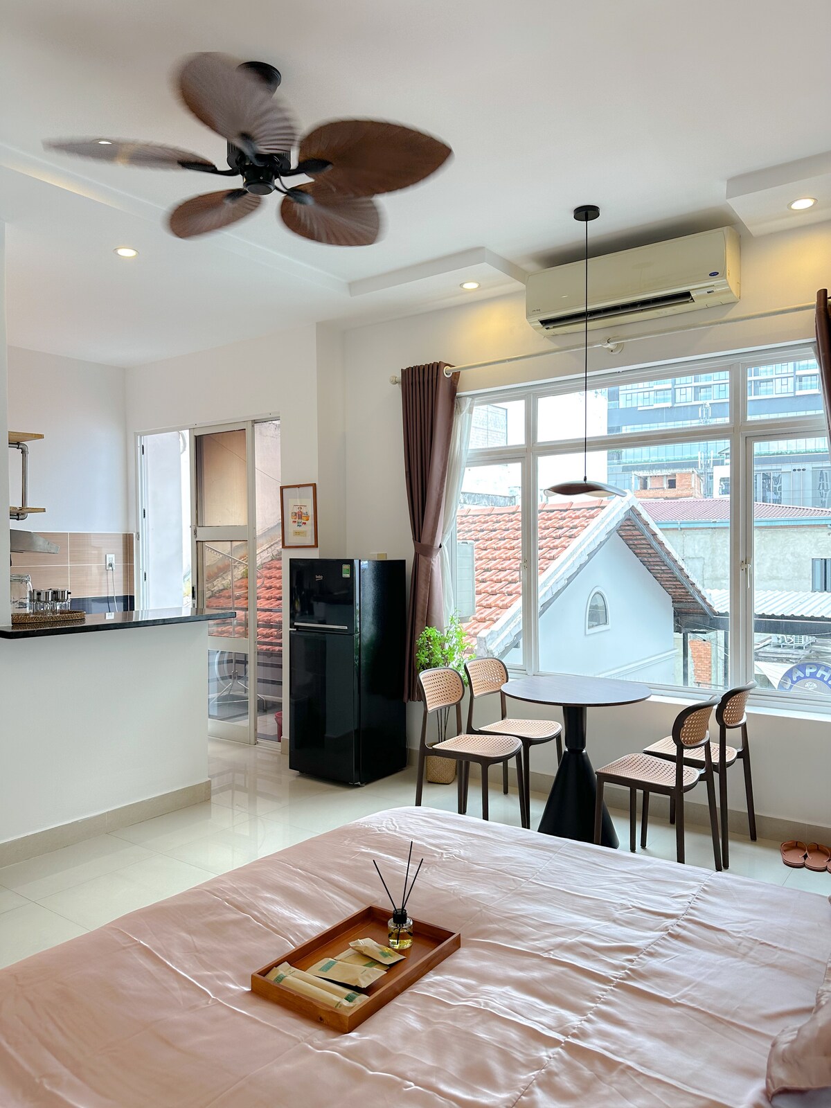 O apartamento no Distrito 10 está localizado onde as fronteiras dos quatro distritos principais da cidade se cruzam, portanto, no coração e no verdadeiro centro da cidade de Ho Chi Minh. Além disso, fica perto do mercado de flores Ho Thi Ky, bem como da rua de comida Ho Thi Ky. Leva apenas 3 minutos para chegar lá a pé. Além disso, uma acomodação tão ideal é conveniente o suficiente para pegar carros ou motos para visitar atrações turísticas de Saigon, como o mercado Ben Thanh, a rua Bui Vien com custo de 2 ou 3 USD (55.000 - 65.000 VND).